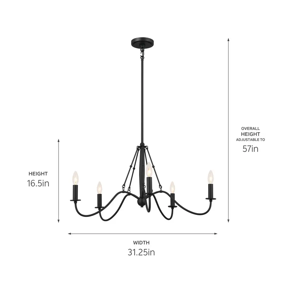 Freesia 31.25" 5 Light Chandelier Textured Black