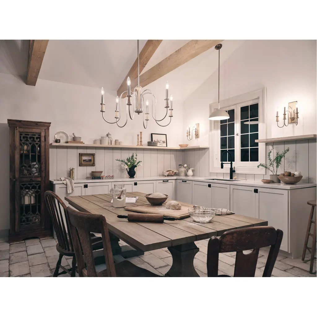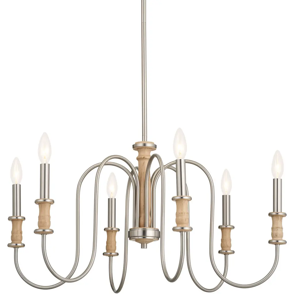 Homestead Karthe 6 Light 29 Inch Brushed Nickel Chandelier Ceiling Light, Karthe