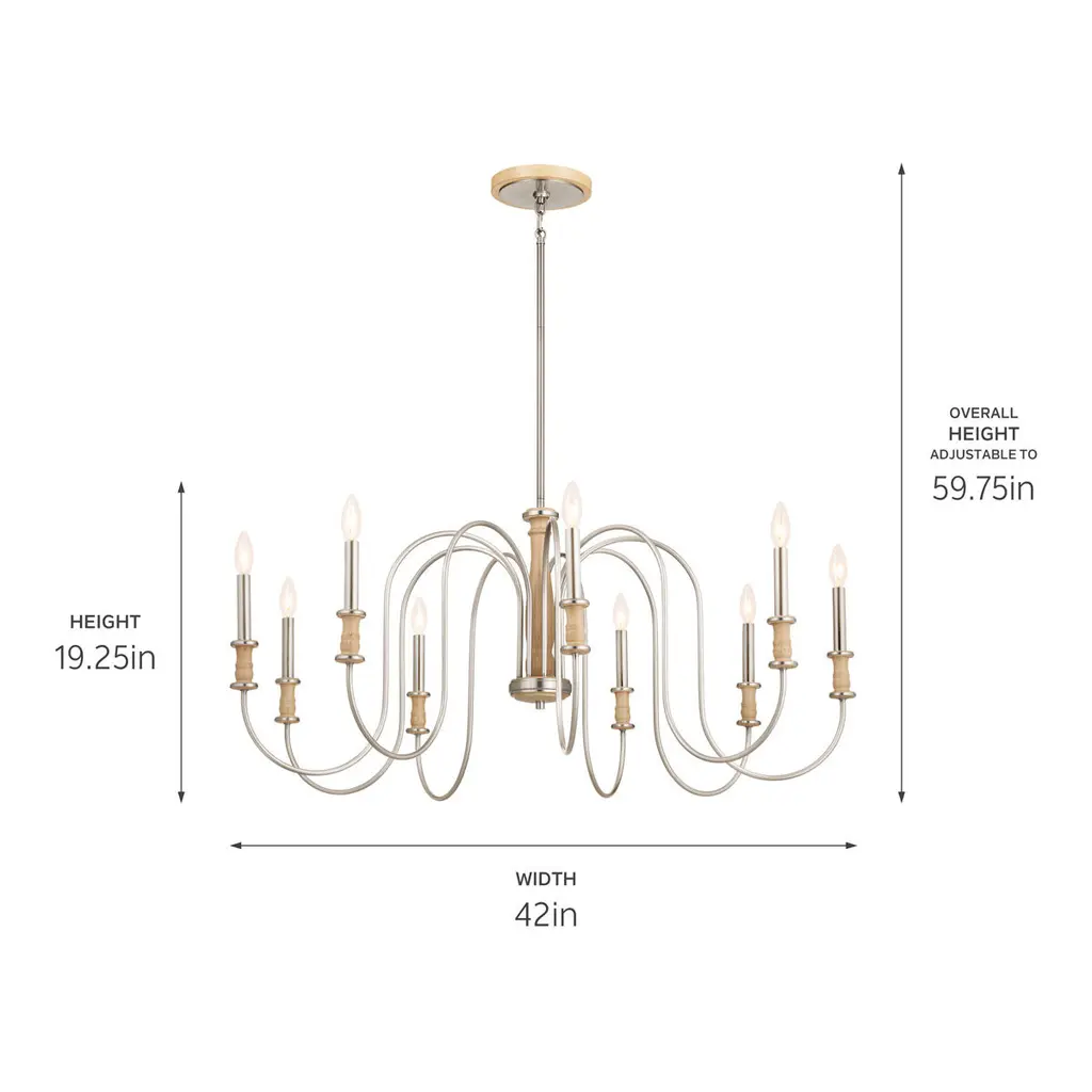 Homestead Karthe 9 Light 42 Inch Brushed Nickel Chandelier Ceiling Light, Karthe