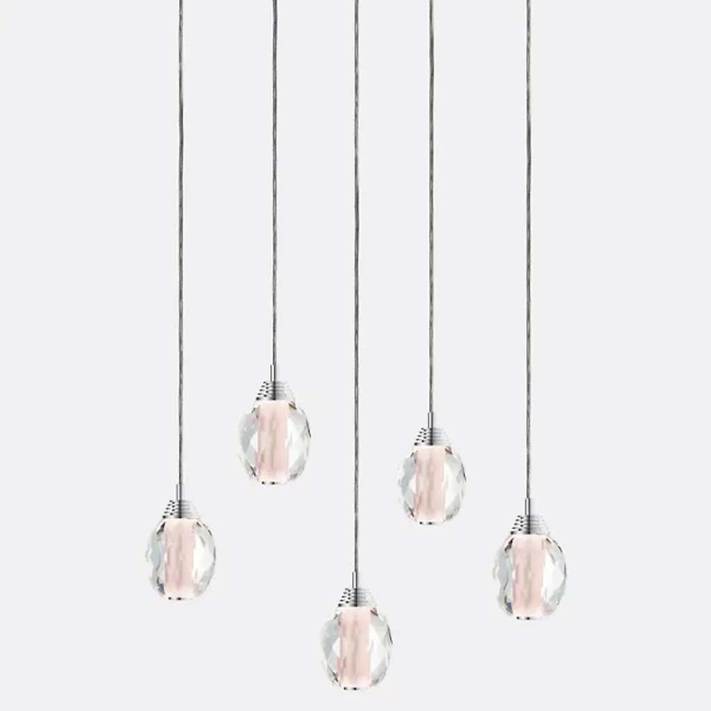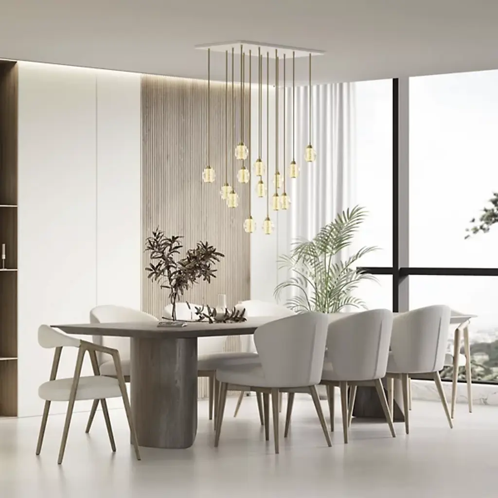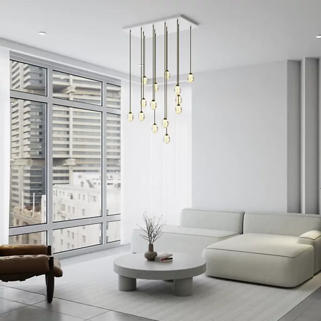 The Honey Comb Rectangular Chandelier by Shakuff showcases a bold, modern design inspired by the intricate creations of honey bees. Its faceted exterior and rich, bubbled glass center evoke natural elegance. Each piece is crafted from thick, hand-molded, laser-cut glass for precision and consistency. An LED COB light at the top enhances the chandelier’s captivating framework, creating a warm, inviting glow. This striking fixture makes a stunning statement in any contemporary space.