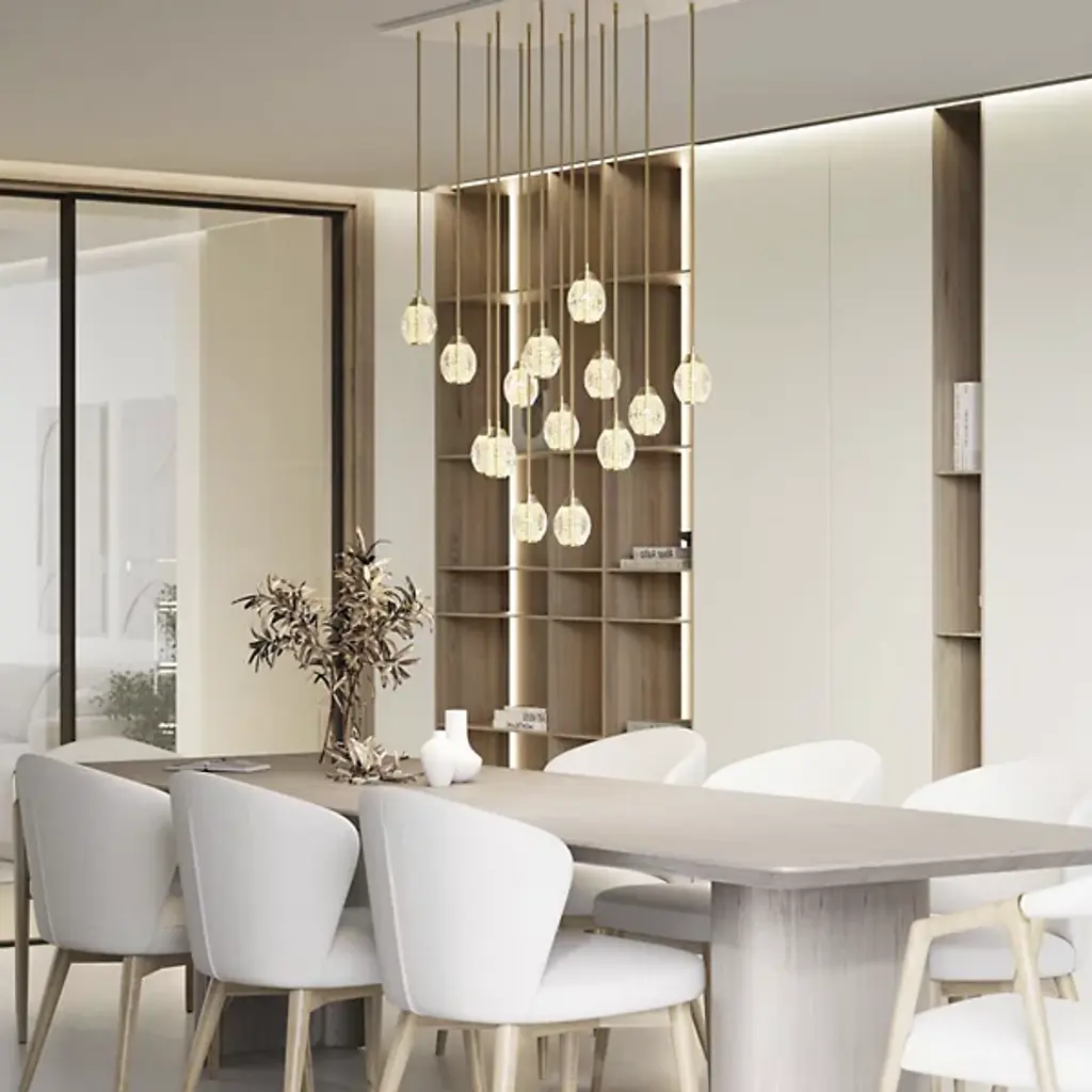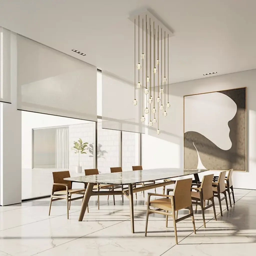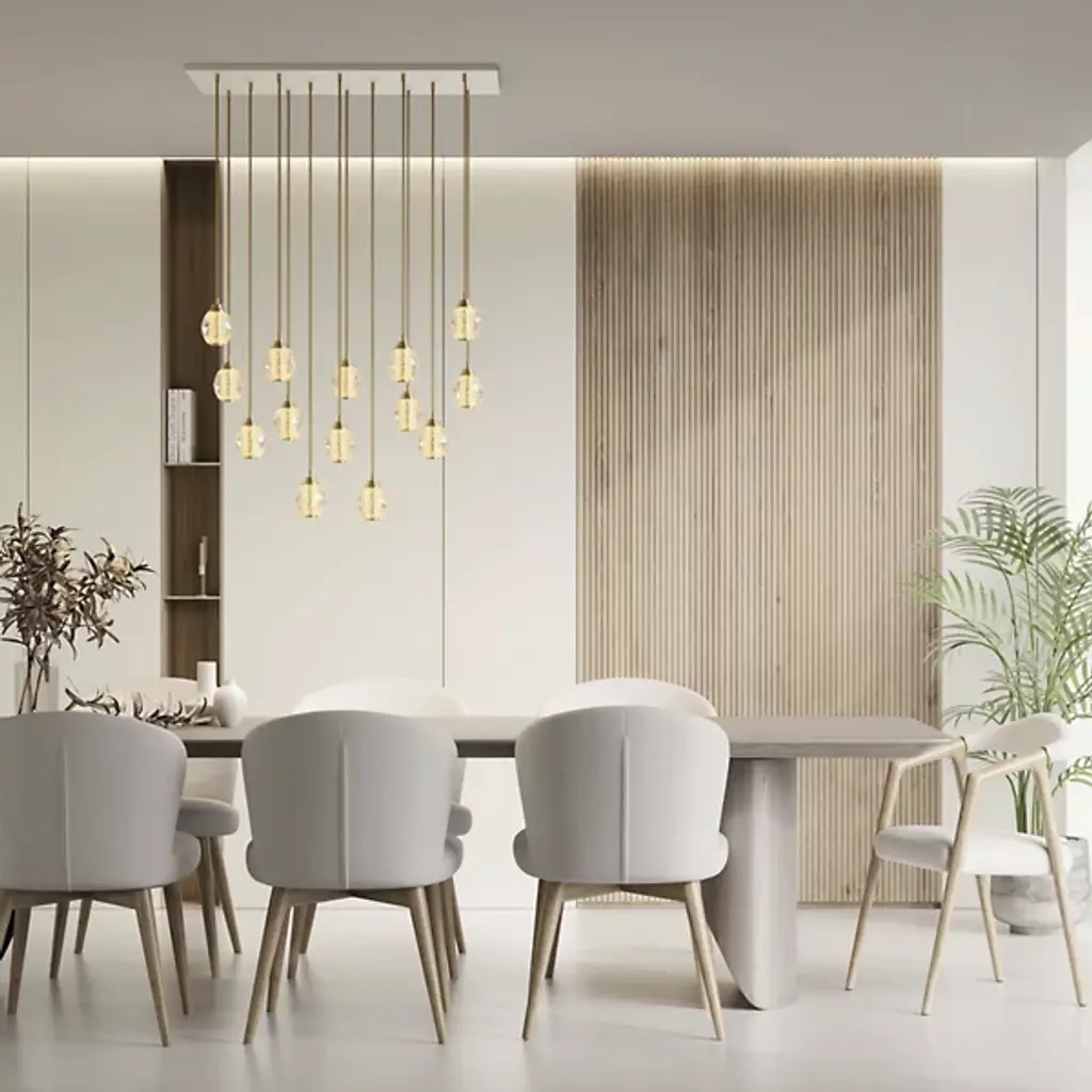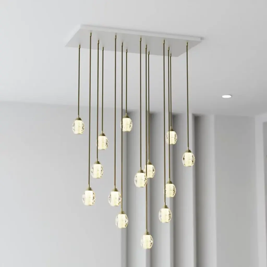 The Honey Comb Rectangular Chandelier by Shakuff showcases a bold, modern design inspired by the intricate creations of honey bees. Its faceted exterior and rich, bubbled glass center evoke natural elegance. Each piece is crafted from thick, hand-molded, laser-cut glass for precision and consistency. An LED COB light at the top enhances the chandelier’s captivating framework, creating a warm, inviting glow. This striking fixture makes a stunning statement in any contemporary space.