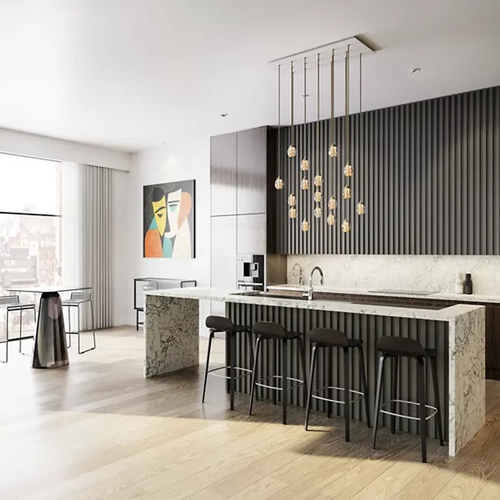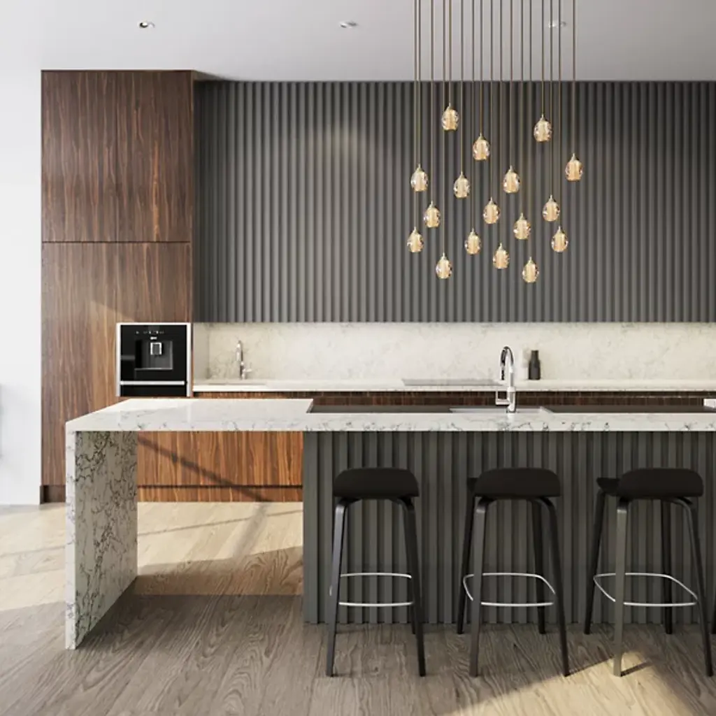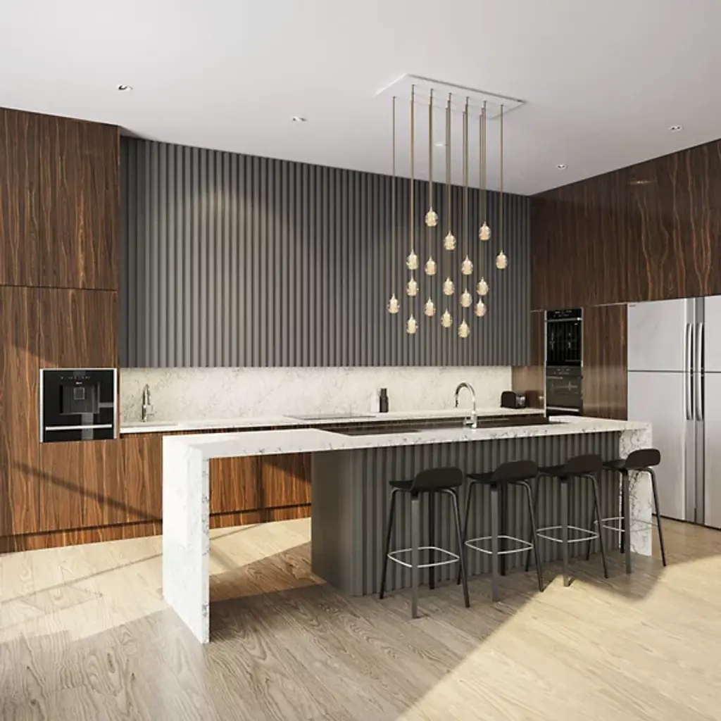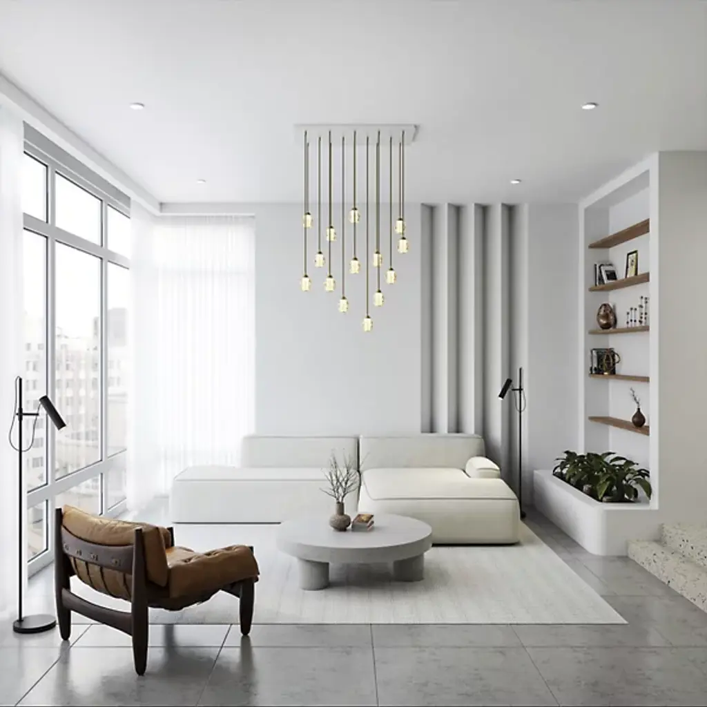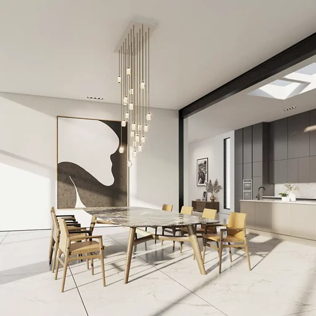 The Honey Comb Rectangular Chandelier by Shakuff showcases a bold, modern design inspired by the intricate creations of honey bees. Its faceted exterior and rich, bubbled glass center evoke natural elegance. Each piece is crafted from thick, hand-molded, laser-cut glass for precision and consistency. An LED COB light at the top enhances the chandelier’s captivating framework, creating a warm, inviting glow. This striking fixture makes a stunning statement in any contemporary space.