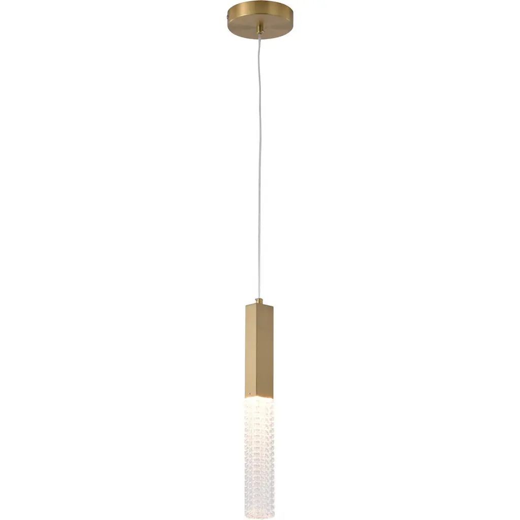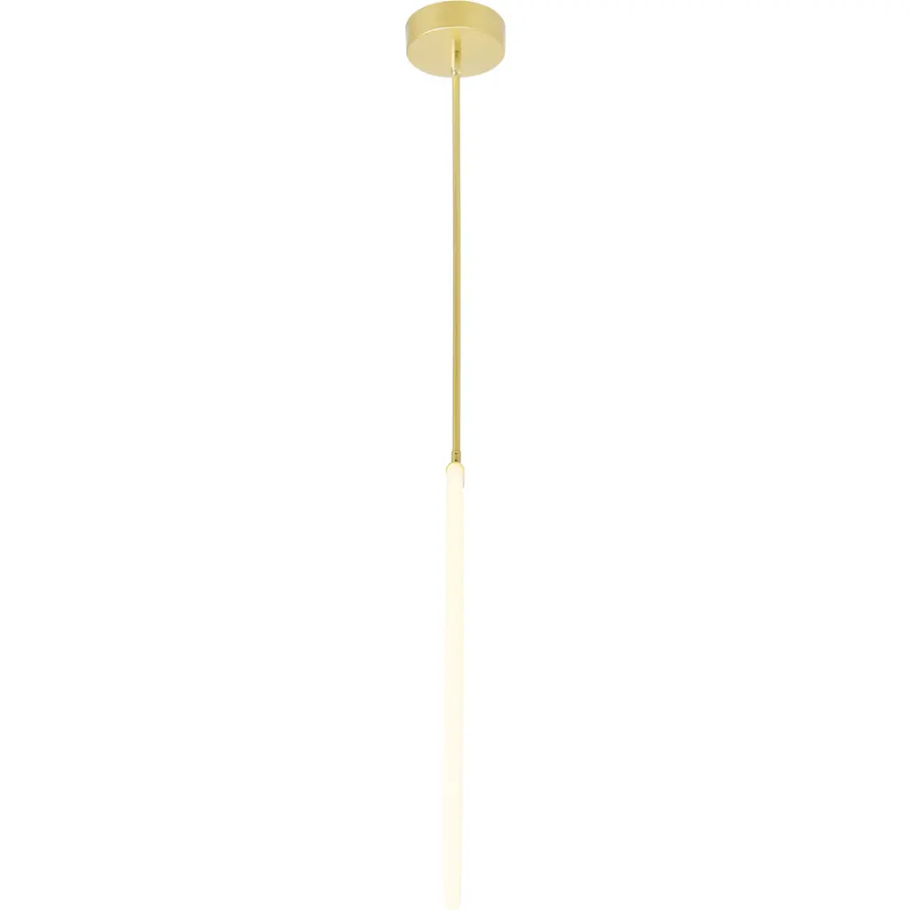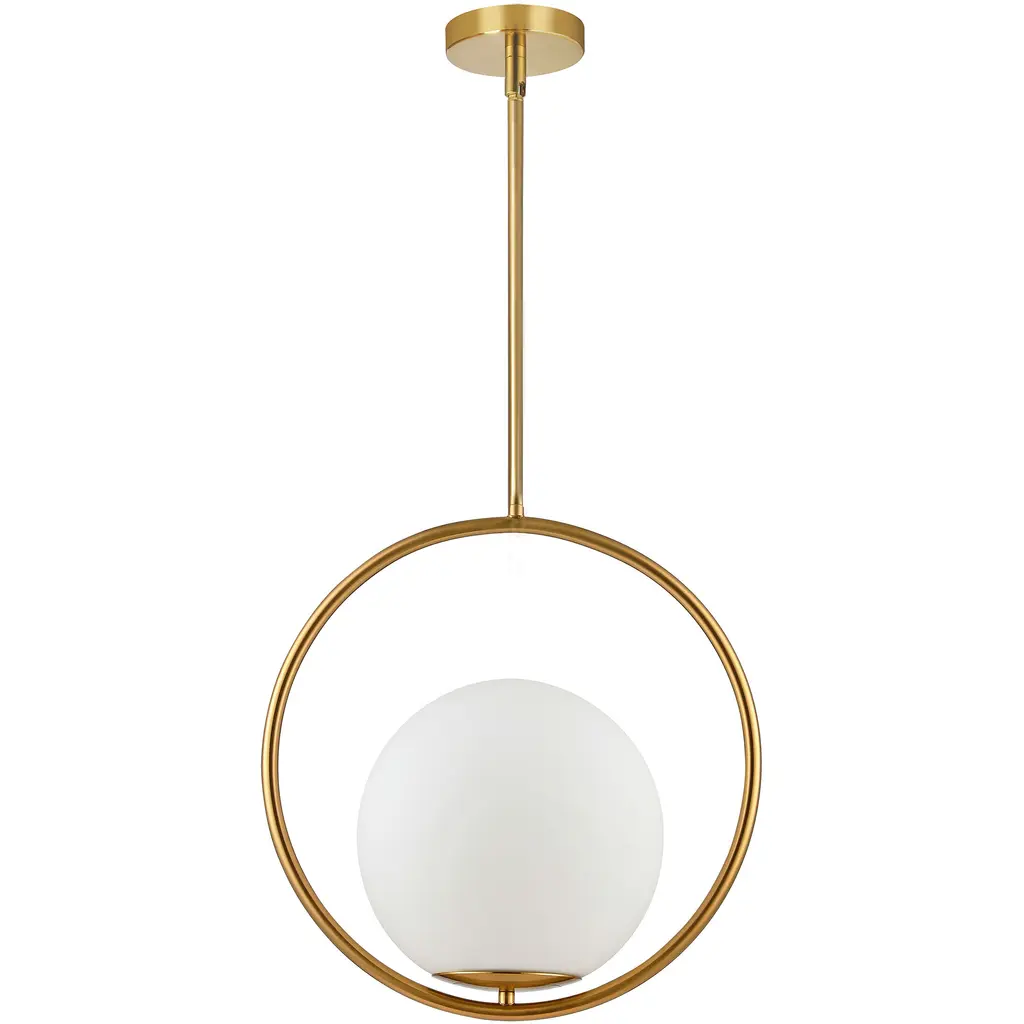 Make a bold, modern statement with the Hoops 24'' LED Chandelier in Satin Gold. With its sculptural silhouette, this contemporary pendant light features a single vertical LED ring suspended from a clean satin gold rod. Emitting a soft, ambient glow, this piece works beautifully in entryways, staircases, or any space that could use a touch of refined illumination. Its integrated LED technology ensures energy efficiency and long-lasting brightness, while its minimalist elegance brings visual interest without overwhelming the room. Finish: Satin Gold Light Count: Integrated LED Light Source: LED, No Bulb Required Adjustable Hanging Height: Yes Material: Metal and Acrylic Style: Modern / Minimalist / Geometric