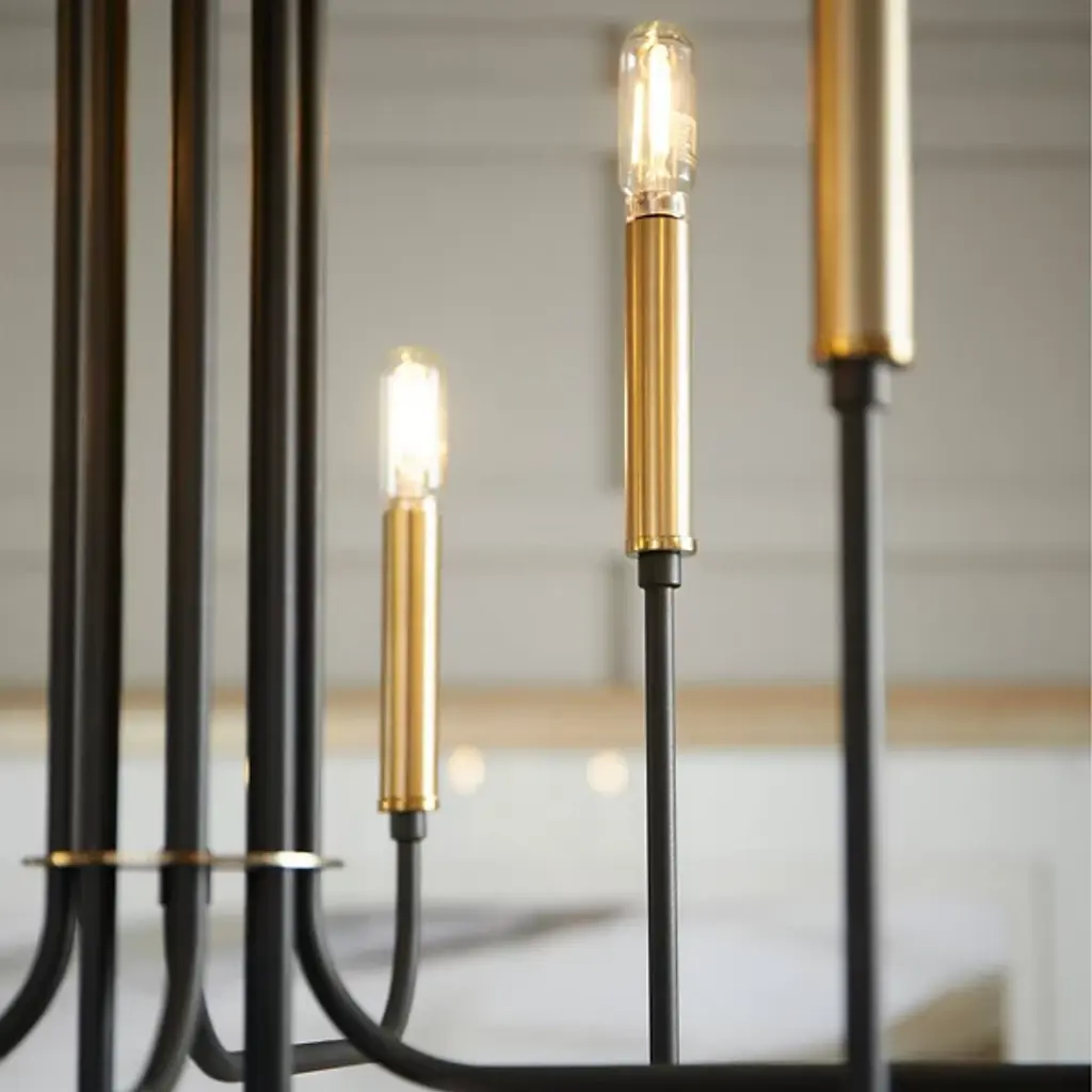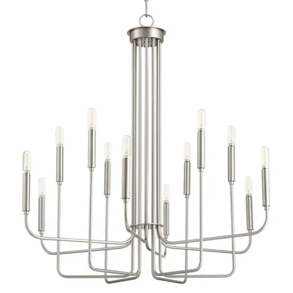A stylish and sleek demonstration of modern design, the Hope Chandelier from Quorum International instantly catches the eye, elevating the décor with ease. Descending from the ceiling at the end of a chainlink, this piece features a series of thin arms formed into a cylindrical shape. Near the base, the arms split and gracefully bend, each ending with a crisp, candelabra-style bulb. The light is bright and even from each bulb, presenting a full display in the room.