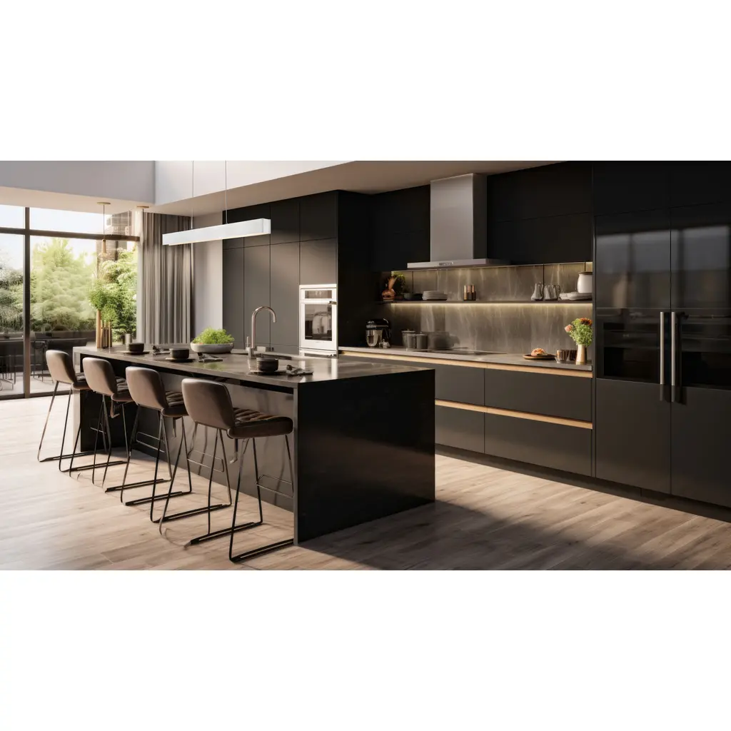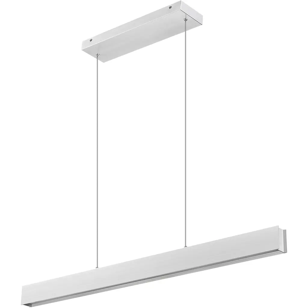 Put finishing touches on your kitchen or game room with a modern linear LED chandelier. It's a sleek, refined design with clean lines and a brushed nickel finish aluminum framework. Integrated LED lighting sits behind a frosted diffuser, adding dimmability and five light color selections for optimal versatility in your modern home.