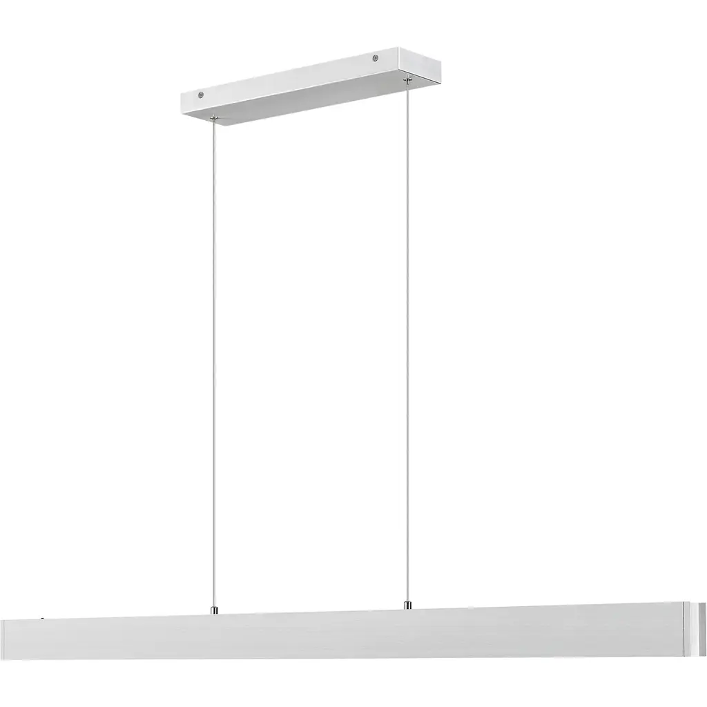 Augment a linear space with the energy efficient illumination of a modern LED chandelier. Its clean-lined silhouette features an aluminum frame in a brushed nickel finish, creating subtle style that fits in virtually any decor. The light is equipped with a frosted diffuser and is dimmable to ensure the right ambiance for every occasion.
