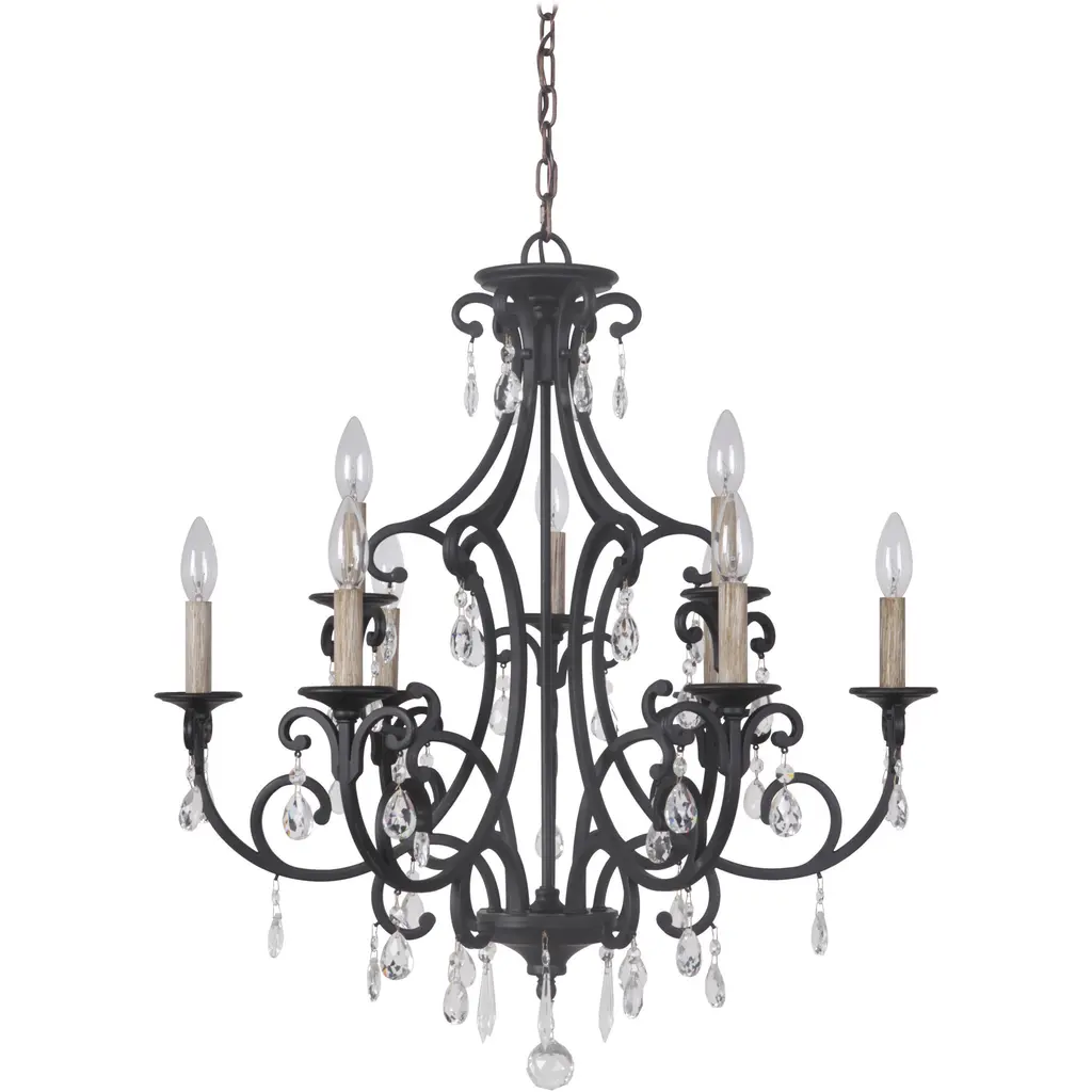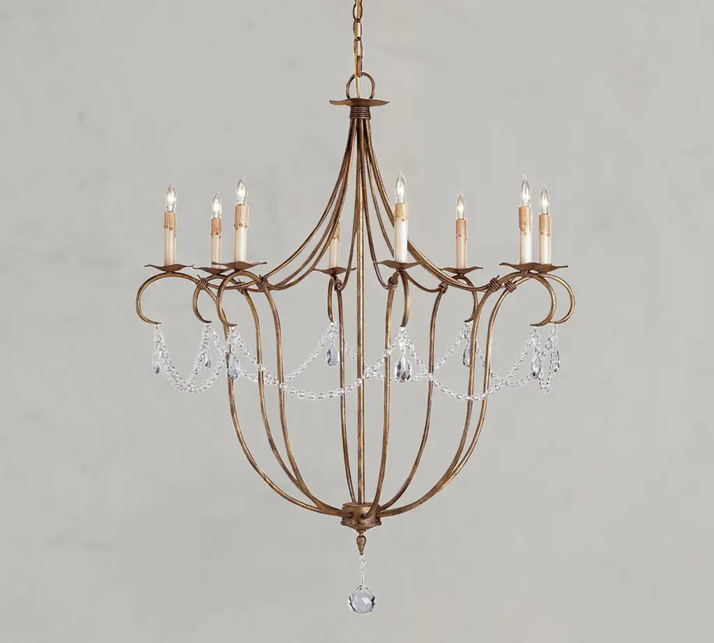 Hanging Dark Brass 6 Candelabra Sockets With Crystals