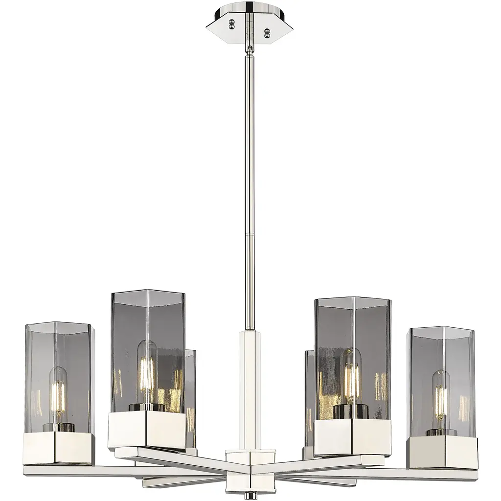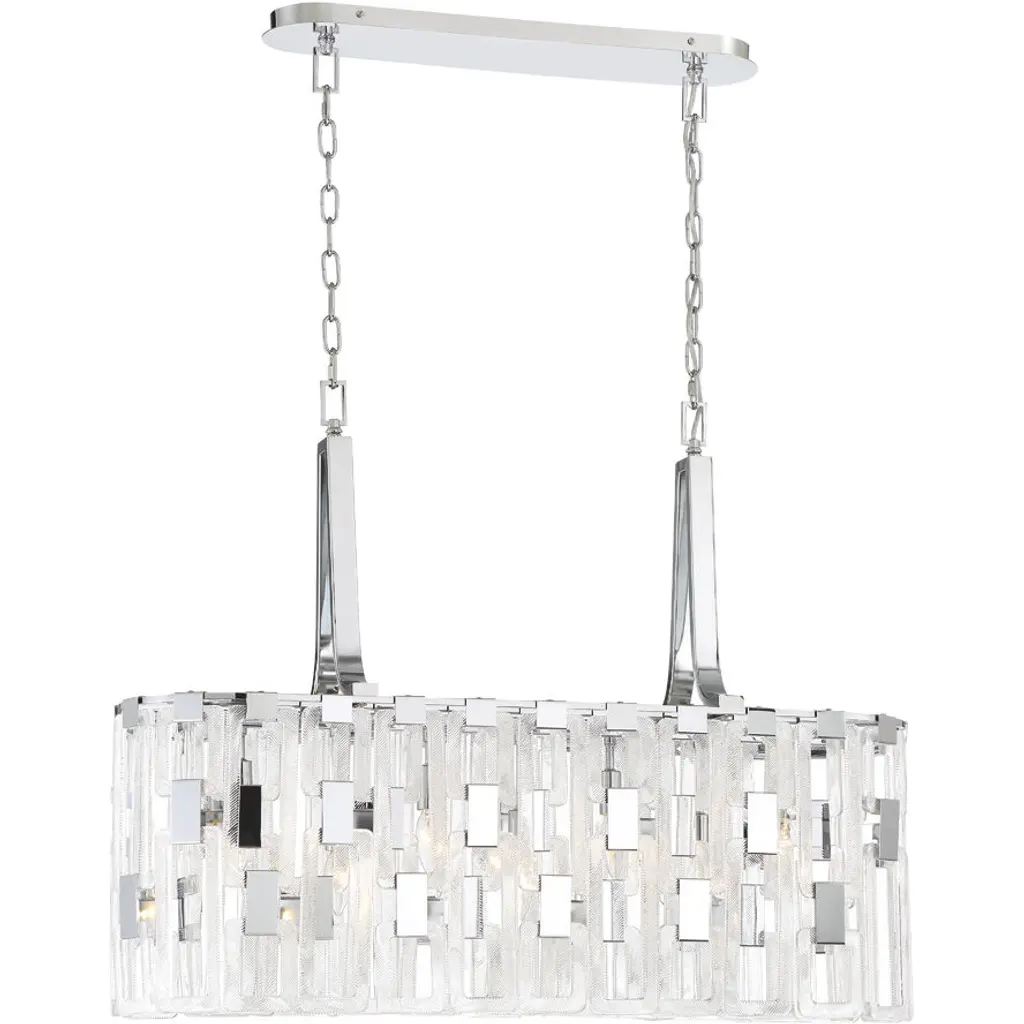 Malik Large Linear Chandelier in Polished Nickel with Crystal