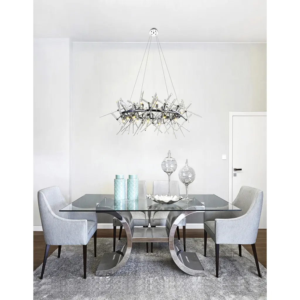 Elevate your homes elegance with this 12-Light Icicle Chandelier in Chrome, featuring cascading crystal drops for a dazzling, modern look. Perfect for dining rooms, foyers, or bedrooms, this ceiling light fixture adds a touch of luxury with its sleek chrome finish and shimmering icicle design. The 12 bulbs (not included) provide ample illumination, creating a warm and inviting atmosphere for any occasion. Easy to install and compatible with dimmer switches, this chandelier allows customizable brightness to suit your mood. Transform your space with this stunning centerpiece that blends contemporary style with timeless sophistication.