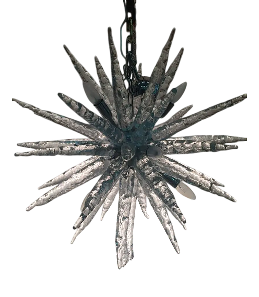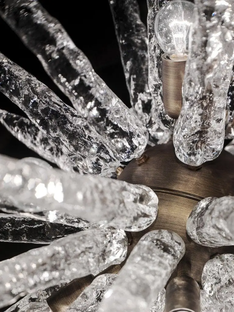 Italian Sputnik chandelier with clear Murano icicle shaped glasses, mounted on bronze metal finish frame / Designed by Fabio Bergomi for Fabio Ltd / Made in Italy9 lights / E12 or E14 type / max 40W eachMeasures: Height 30 inches plus chain and canopy / diameter 30 inchesOrder only / This item ships from Italy.