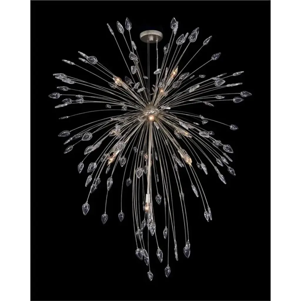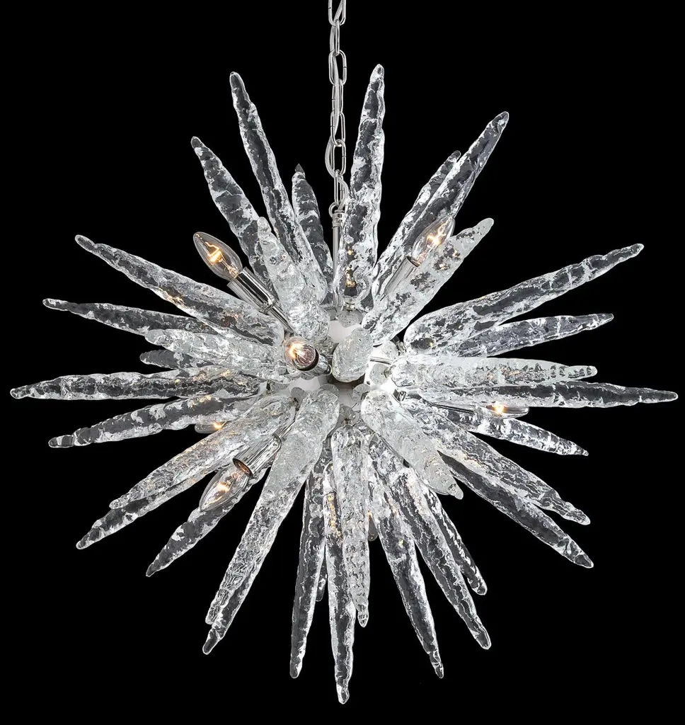 Italian Sputnik chandelier with clear Murano icicle shaped glasses, mounted on chrome finish metal frame / Designed by Fabio Bergomi for Fabio Ltd / Made in Italy9 lights / E12 or E14 type / max 40W eachMeasures: Height 30 inches plus chain and canopy / diameter 30 inchesOrder only / this item ships from Italy.