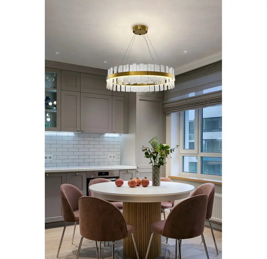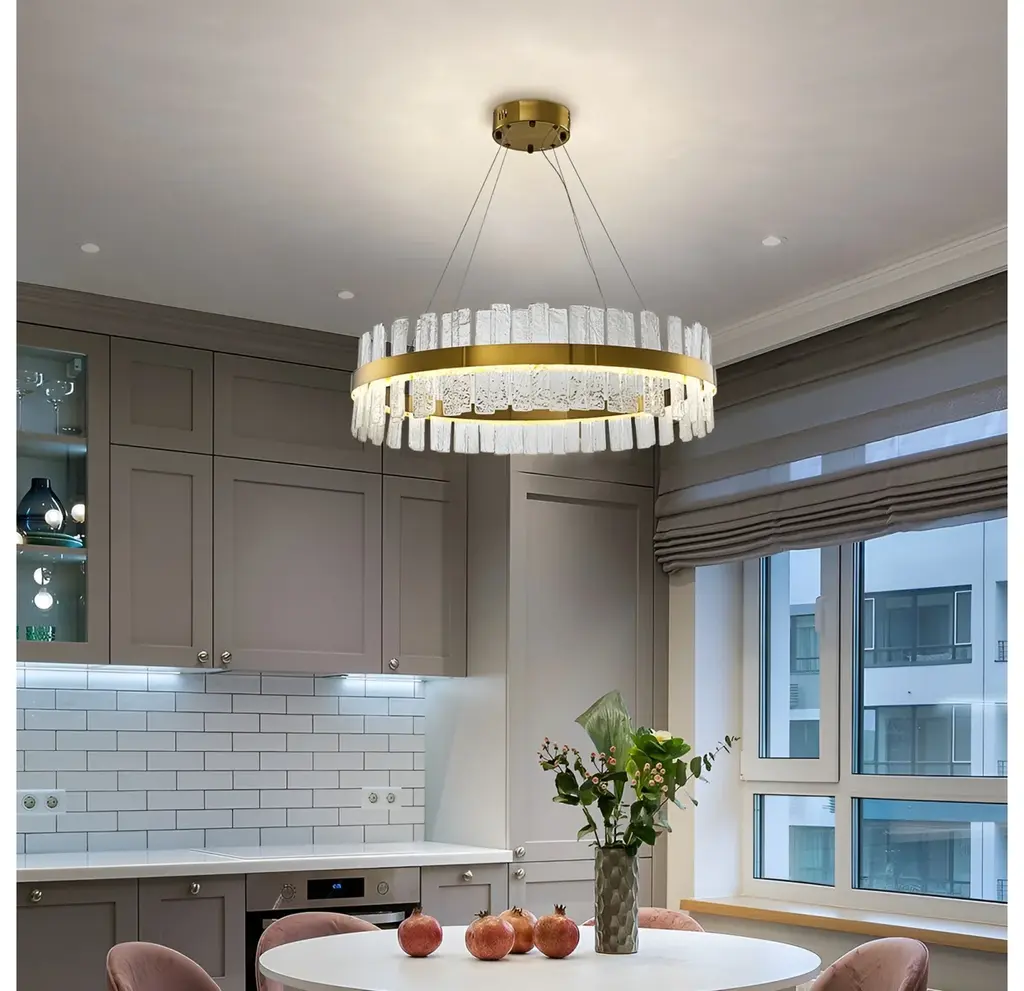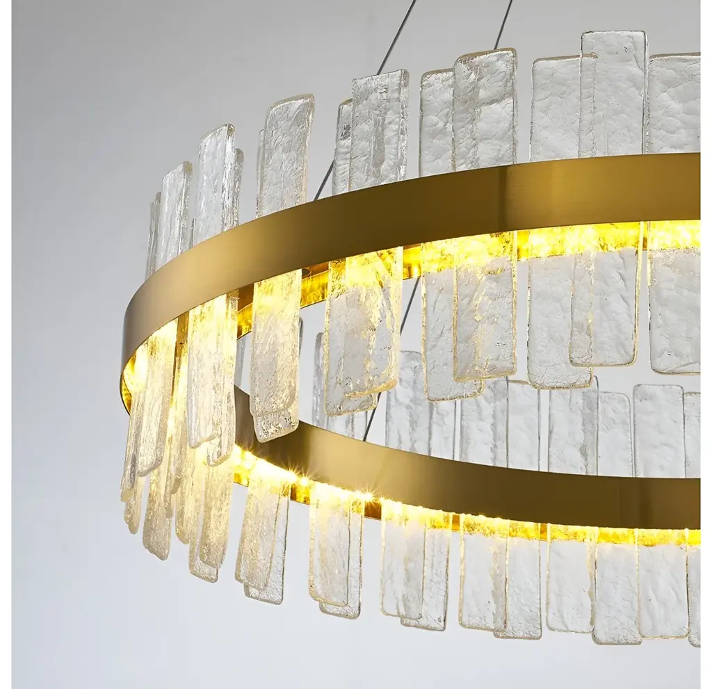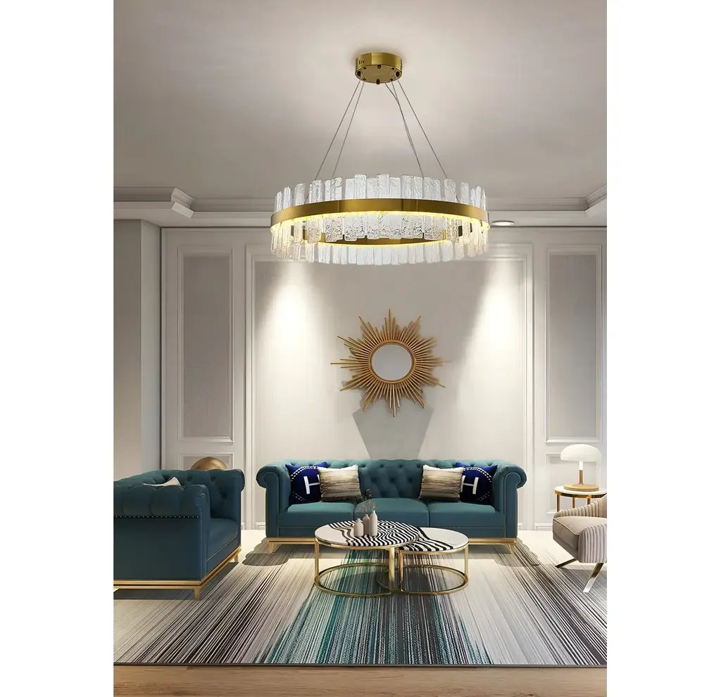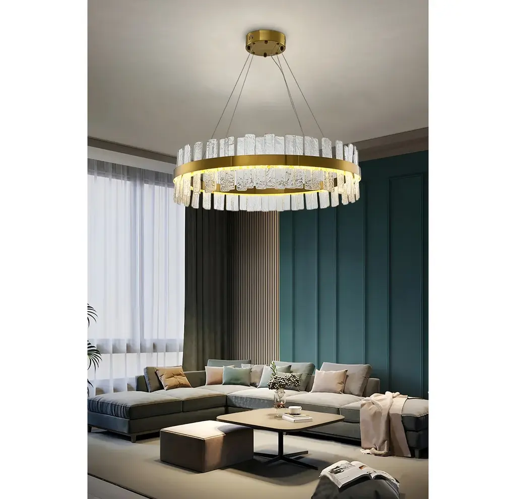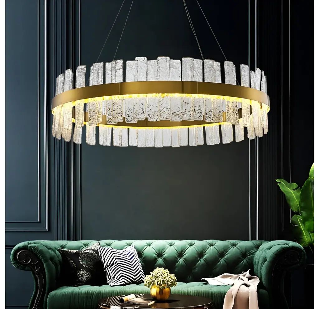 This gold glass round chandelier for living room epitomizes modern elegance and sophistication. Crafted with exquisite crystal lighting, this chandelier is a stunning addition to contemporary home decor. The modern design features a sleek round shape, perfect for enhancing the ambiance of bedrooms and living rooms. Illuminate your space with a touch of luxury and style, creating a dazzling focal point that exudes opulence and charm. Elevate your living space with this mesmerizing chandelier that seamlessly blends modern aesthetics with functionality.Product parameters:Item Style: ModernMaterial: Stainless steel, GlassSize:Cord length is adjustableDia16xH47"/Dia40xH120cmDia24xH47"/Dia60xH120cmDia31xH47"/Dia80xH120cmDia39xH47"/Dia100xH120cmLight Source: Led StripsColor Temperature: Warm light 3000KWattage: Non-dimmableVoltage: AC110-240VDelivery: 2-15 daysUL Certified: YESApplicable Area: 15-25m²Apply: Living Room, Dining Room, Bedroom, Kitchen Island, Restaurant, BarReminder! Save products as favorites and put them in your shopping cart so as not to lose them.Our Advantages-Top-quality-Unique products, production of non-standard models-Perfect balance of price-quality-warranty-24/7 customer service-Flexible custom production of any size/color-Constant updating of the assortment-Free Express delivery, easy returns.MIRODEMI is the premier retailer of modern and contemporary lighting, which will ensure the uniqueness of any interior by providing a combination of stylish shape and innovative technology. We will be glad to cooperate with Interior Designers, Builders, Architects in the field of realizing the exclusive fabulous projects.Go to our store page to see all the latest collections of modern chandeliers, wall sconces, pendant lights for any budget and space of your sweet home: kitchen, dining room, living room, bedroom, bathroom, staircase, loft, hall, foyer. Become a follower not to miss new items and don't forget to save your favorite products in order not to lose them. Happy shopping with MIRODEMI.