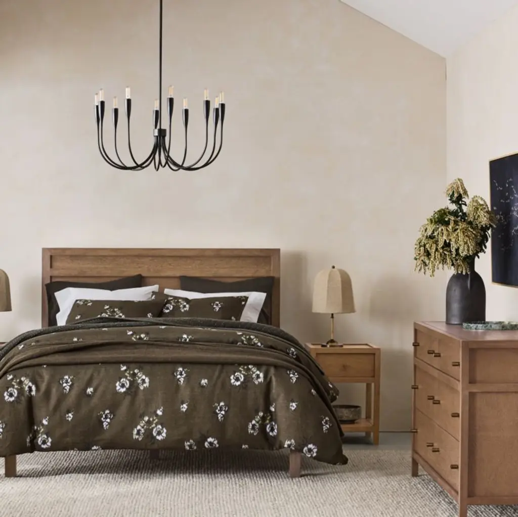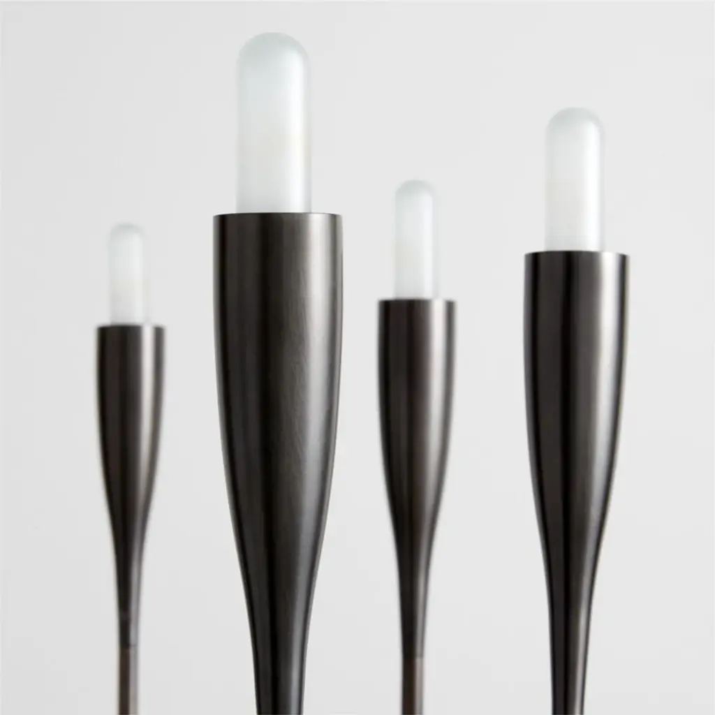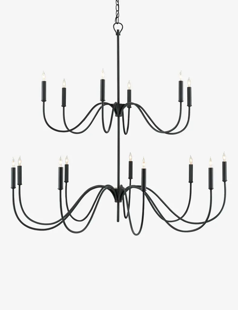 Grace and exuberance find balance in this striking chandelier. Gathering 10 arced arms, Iiona offers a modern take on elaborate antique chandeliers with numerous lights. The result is sculptural and streamlined, with the blackened steel finish keeping all of the focus on the light's clean lines and fluid curves. With 10 sockets, our small Iiona chandelier light shows off your favorite candelabra bulbs.