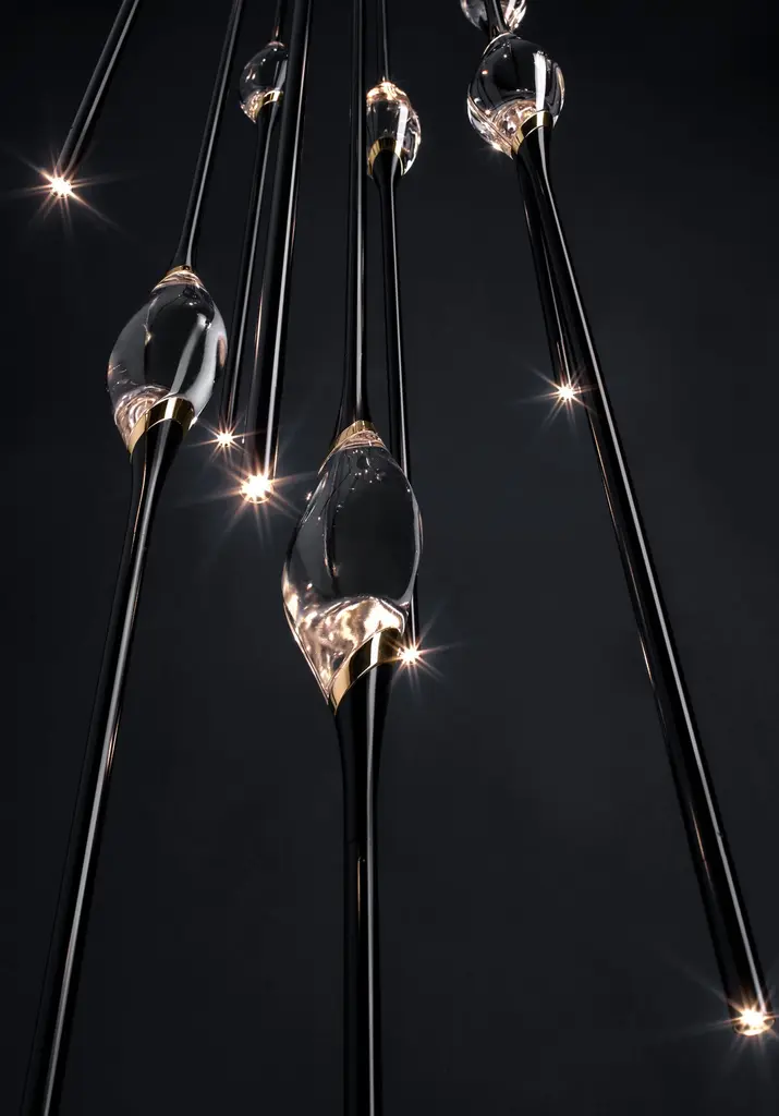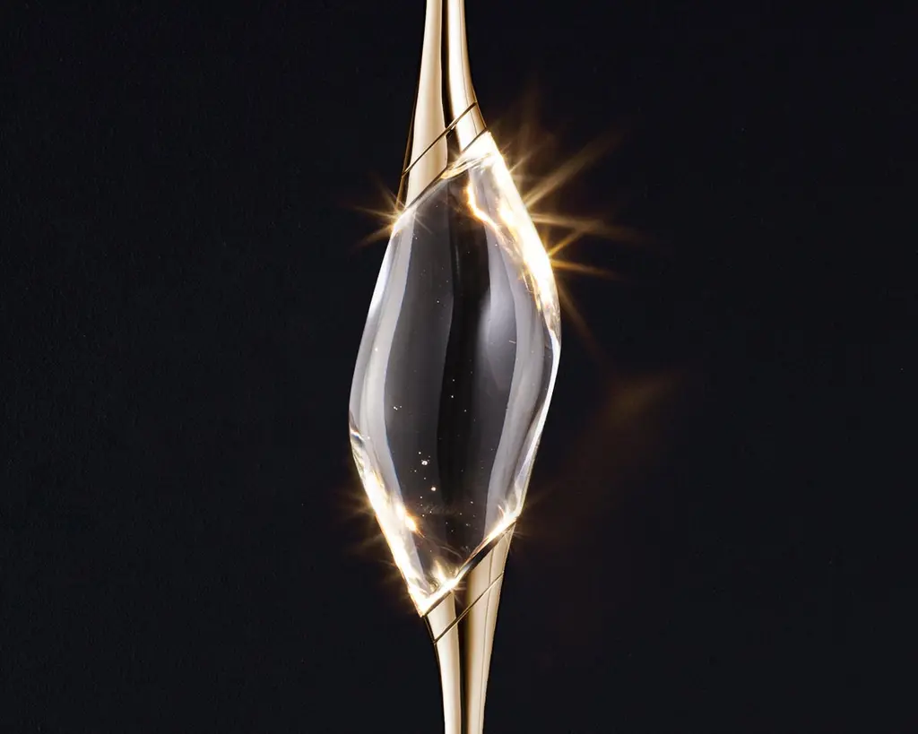 Il Pezzo 12 is a female figure suspended in the air, carrying in her womb the light. It’s nimble, refined, addictive.The solid clearest crystal, brilliantly illuminated by two LEDs, diffuses ambient light and casts mesmerizing patterns throughout the room. It’s suspended between brass stems and brass casting rings, available in different finishes. The fixture is adorned with an additional LED at the end of each stem to provide direct lighting. Experiencing the exquisite craftsmanship of this piece, combined with highly advanced LED technology, is truly fascinating.Il Pezzo 12 allows to create clusters able to satisfy the most demanding designs by creating fascinating compositions.Each chandelier is numbered and shows the “Missing Piece” (“Pezzo Mancante” in Italian): a small brass cylinder containing a unique serial number, guarantees its authenticity and individuality.Custom sizes and finishes are also available to suit every preference.All our masterpieces are meticulously crafted in our Atelier located in Florence, Italy, from a small team of people driven by a shared passion for quality and beauty. We constantly strive to create unparalleled works of art, where each piece is a testament to our commitment to craftsmanship and innovation.Structure: BrassFinish: Gold finish brassDiffusers: Solid crystalLight source: 2.700K LED, CRI>90, dimmable.Size: ø80 x H 350 cm - ø31.5" x H 137.8" (custom size on request)ETL certified UL and CSA standards compliant.