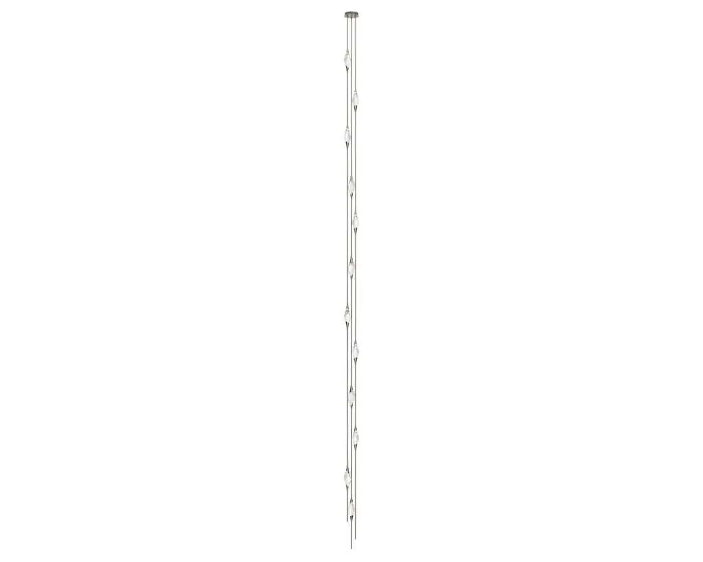 Il Pezzo 12 is a female figure suspended in the air, carrying in her womb the light. It’s nimble, refined, addictive.The solid clearest crystal, brilliantly illuminated by two LEDs, diffuses ambient light and casts mesmerizing patterns throughout the room. It’s suspended between brass stems and brass casting rings, available in different finishes. The fixture is adorned with an additional LED at the end of each stem to provide direct lighting. Experiencing the exquisite craftsmanship of this piece, combined with highly advanced LED technology, is truly fascinating.Il Pezzo 12 allows to create clusters able to satisfy the most demanding designs by creating fascinating compositions.Each chandelier is numbered and shows the “Missing Piece” (“Pezzo Mancante” in Italian): a small brass cylinder containing a unique serial number, guarantees its authenticity and individuality.Custom sizes and finishes are also available to suit every preference.All our masterpieces are meticulously crafted in our Atelier located in Florence, Italy, from a small team of people driven by a shared passion for quality and beauty. We constantly strive to create unparalleled works of art, where each piece is a testament to our commitment to craftsmanship and innovation.Structure: BrassFinish: BronzeDiffusers: Solid crystalLight source: 2.700K LED, CRI>90, dimmable.Size: ø20 x H 700 cm - ø7.9" x H 275.6" (custom size on request)ETL certified UL and CSA standards compliant.