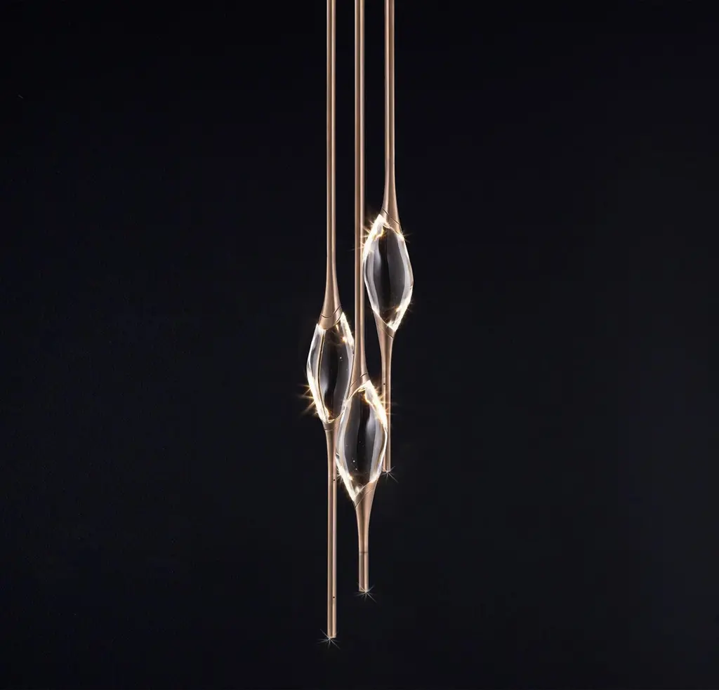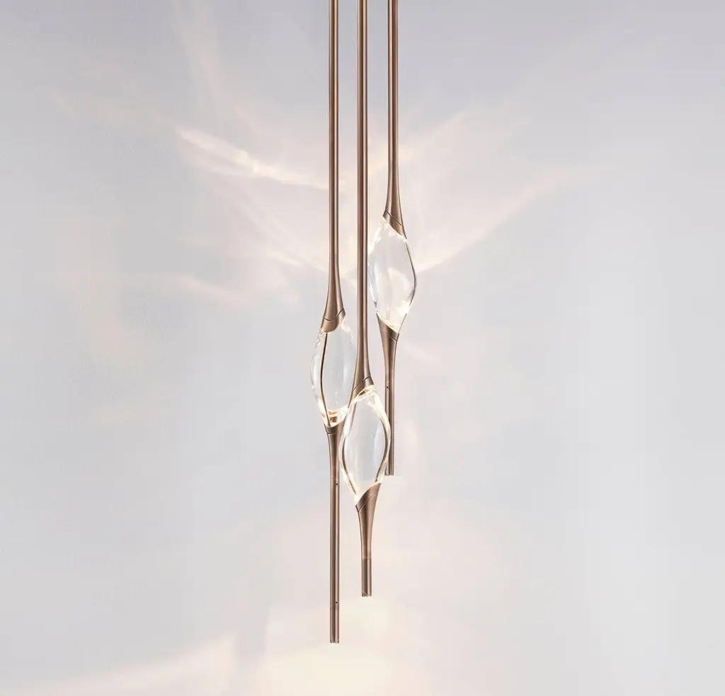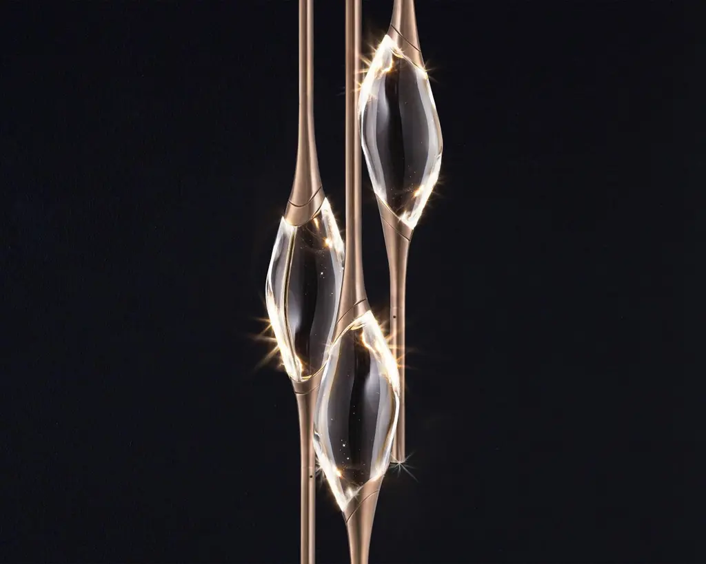 Il Pezzo 12 is a female figure suspended in the air, carrying in her womb the light. It’s nimble, refined, addictive.The solid clearest crystal, brilliantly illuminated by two LEDs, diffuses ambient light and casts mesmerizing patterns throughout the room. It’s suspended between brass stems and brass casting rings, available in different finishes. The fixture is adorned with an additional LED at the end of each stem to provide direct lighting. Experiencing the exquisite craftsmanship of this piece, combined with highly advanced LED technology, is truly fascinating.Each chandelier is numbered and shows the “Missing Piece” (“Pezzo Mancante” in Italian): a small brass cylinder containing a unique serial number, guarantees its authenticity and individuality.Custom sizes and finishes are also available to suit every preference.All our masterpieces are meticulously crafted in our Atelier located in Florence, Italy, from a small team of people driven by a shared passion for quality and beauty. We constantly strive to create unparalleled works of art, where each piece is a testament to our commitment to craftsmanship and innovation.Structure: brassFinish: bronzeDiffusers: solid crystalLight source: 2.700K LED, CRI>90, dimmable.Size: ø20 x H 120 cm - ø7.9" x H 47.2" (custom height on request)ETL certified UL and CSA standards compliant.