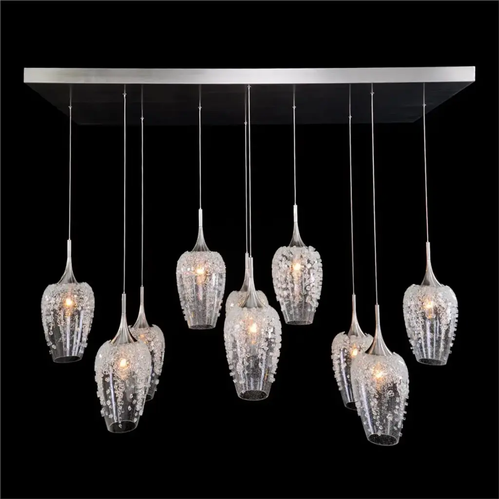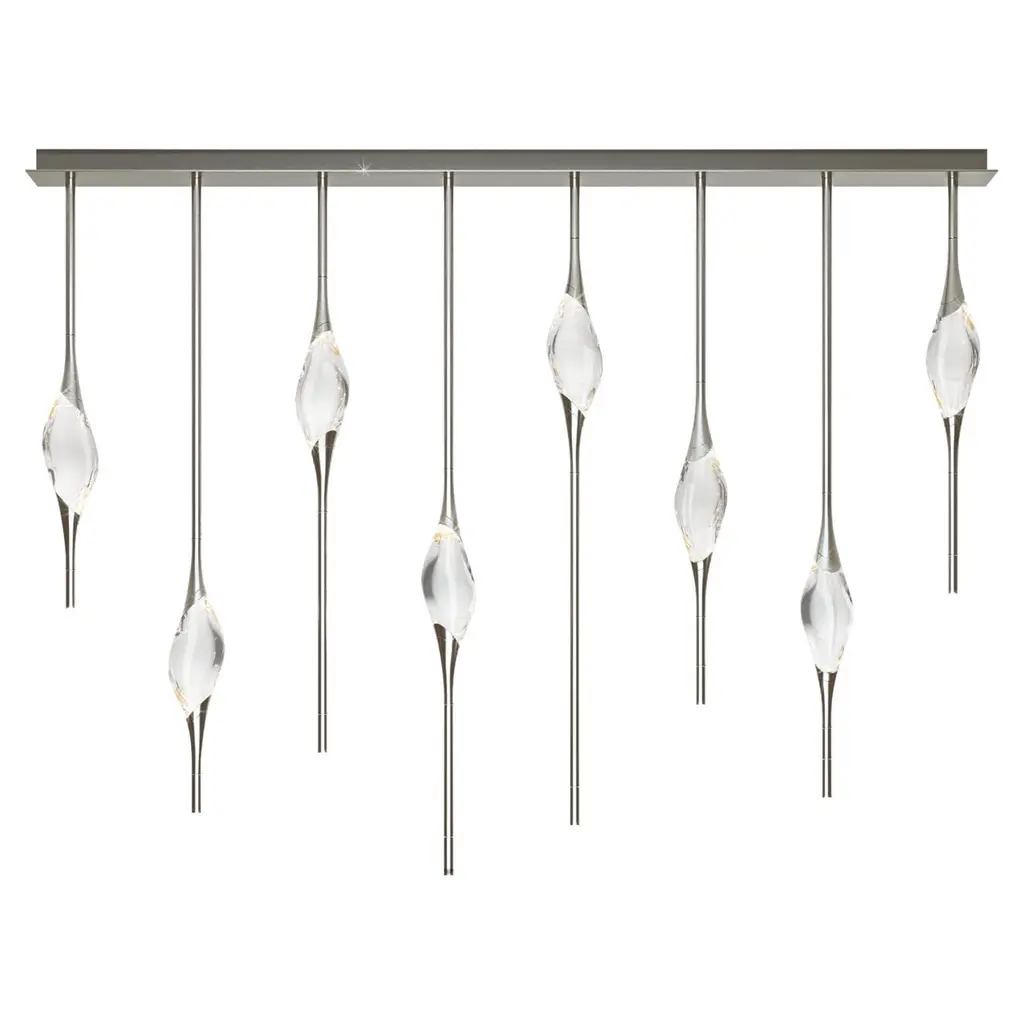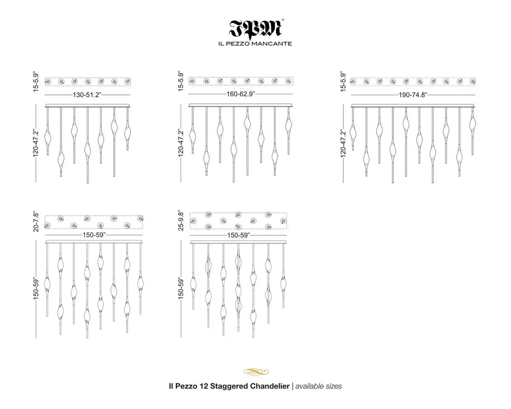 "Il Pezzo 12 Staggered Chandelier" - Length 150cm/59” - Nickel - Crystal - Leds