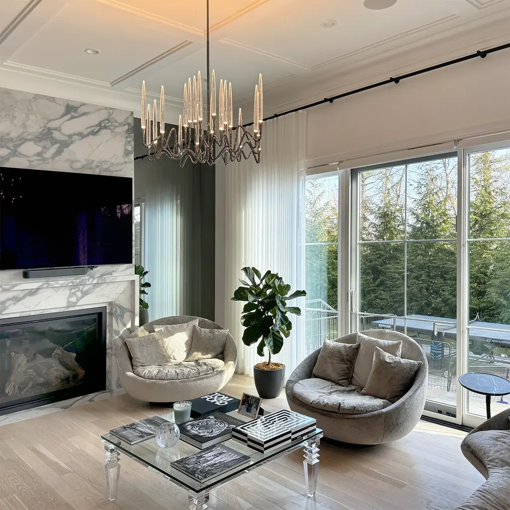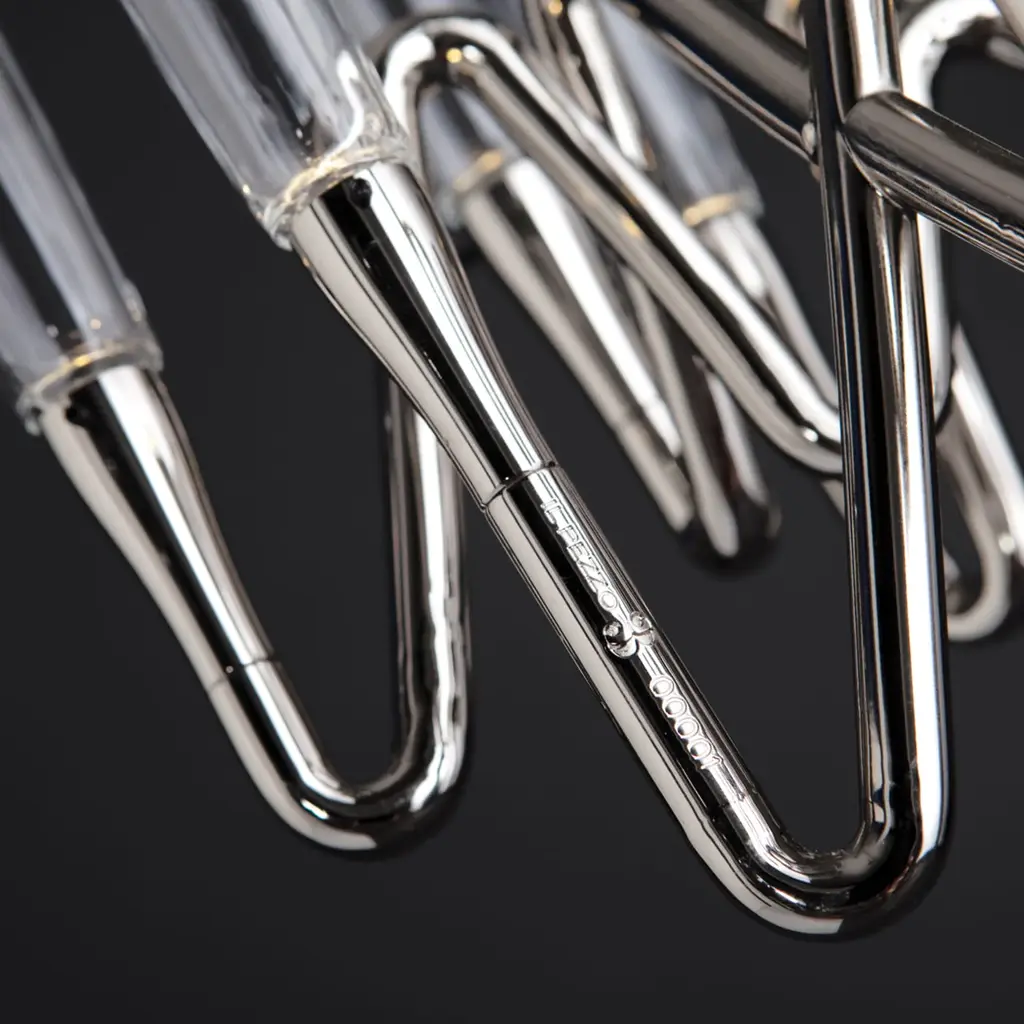 Il Pezzo 3 Round Chandelier draws inspiration from Arabic calligraphy and the classic candelabrum, featuring a hand-forged brass structure and elegant solid crystal "candles" crafted in line with Tuscan artisan tradition. Illuminated by advanced LED technology, it exudes a refined, romantic glow. Each lamp is numbered and includes the “Missing Piece” ("Pezzo Mancante")a brass cylinder with a unique serial number to ensure authenticity. Customizable in size and finish, this piece merges tradition with modern elegance.
