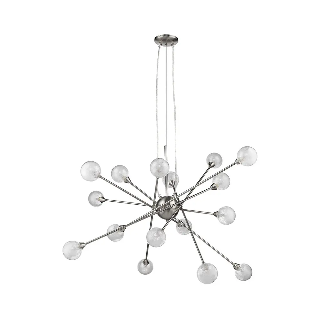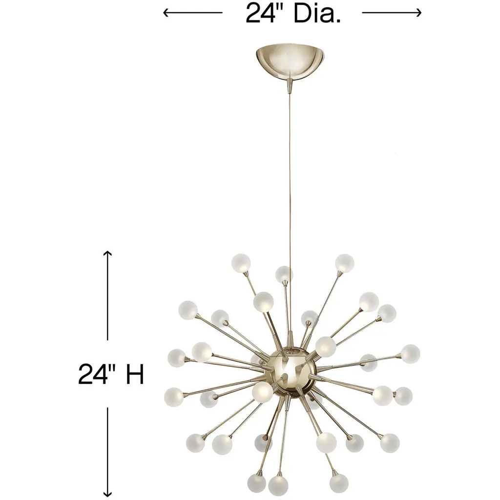 Impulse is a dynamic LED design with a striking contemporary shape. Petite stems radiate from the spherical body while miniature acrylic ornaments of light glow at its tips. An array of chic finishes in Polished Chrome, Polished Gold, and Cloud (White) intensifies its stunning effect.