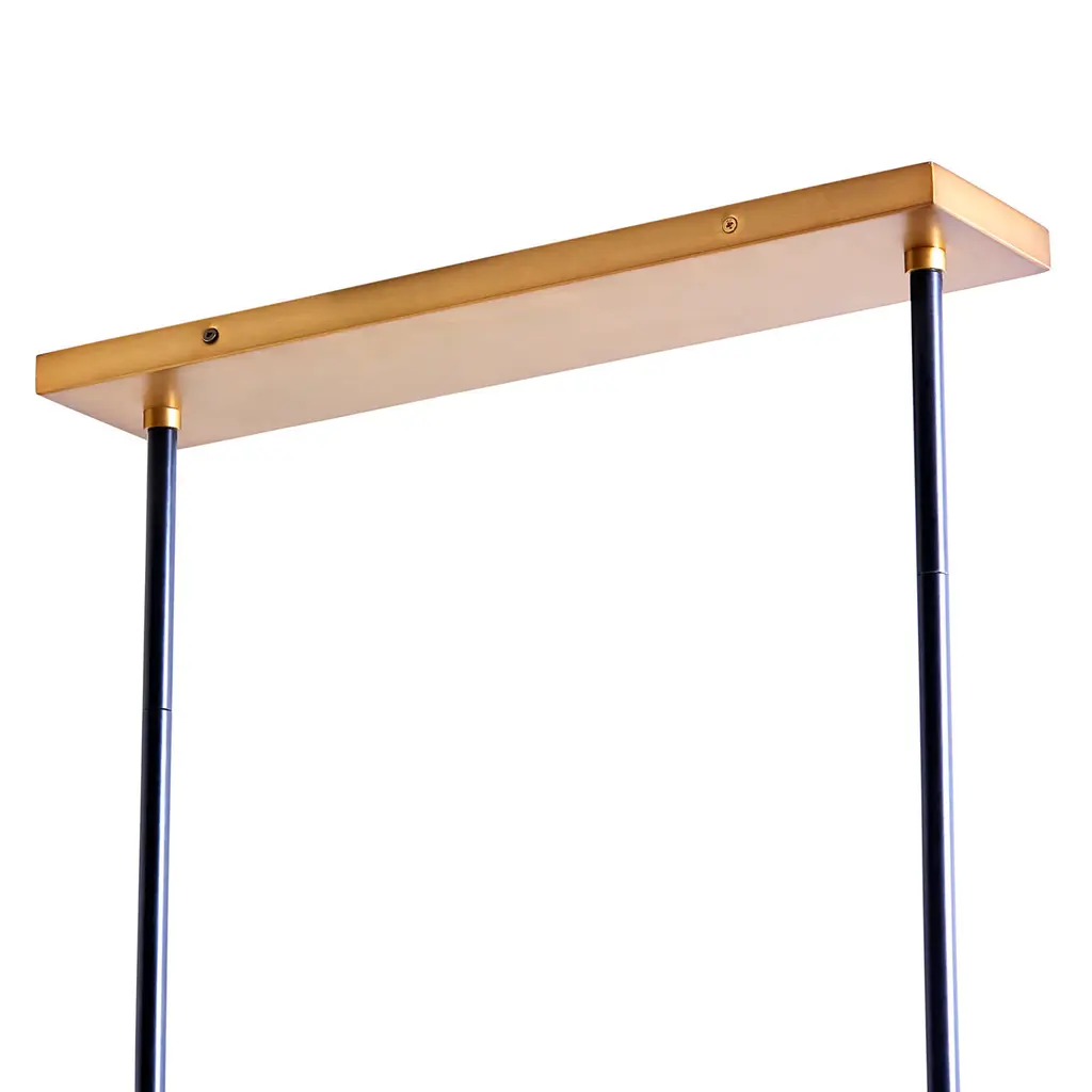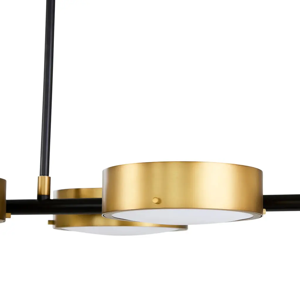 Industrial Modern. Our Industry lighting collection’s architectural rigor is at-home in a minimalist space, or use it to balance out a maximalist abode. Featuring six brass shades housing fully integrated LED panels and hanging from blackened steel framework, our Industry Chandelier is your go-to for creating a modern mood. Sized to swag over a square dining table. All lighting sales are final.