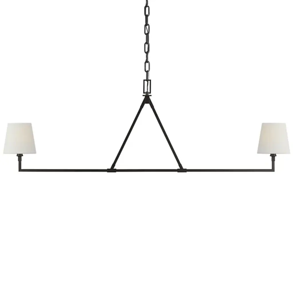 Timeless design, distinctive details, and impeccable quality come together in Amber Lewis' cool California take on lighting. The Ingela linear chandelier pairs slender curves with sleek finishes in a linear silhouette designed for modern ceiling lighting. We love this streamlined chandelier for elevating a long dining table or kitchen island with quiet elegance and symmetry.