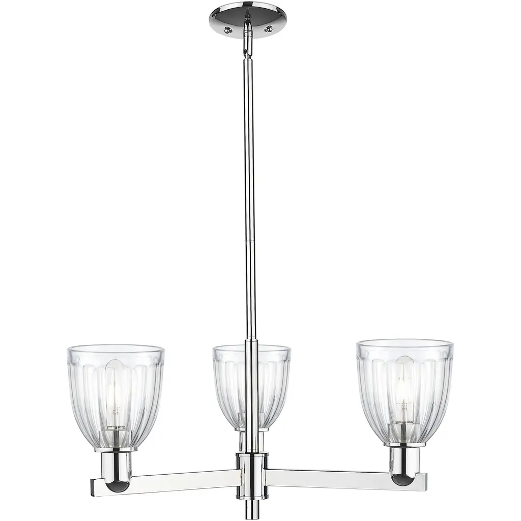 Modern sleek lines in polished nickel contrast perfectly with the crisp ribbing in the clear glass, adding a touch of texture and urban chic. Our Ingo collection offers simplicity with a bit of flair creating visual interest to your environment.