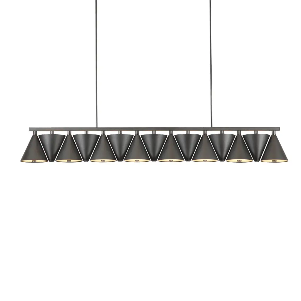 Dynamic design and crisp lines give the Ishida Collection of chandeliers a look of distinction that will become a striking focal point for any room. The fixtures are finished in matte black and are available in either 4-light or 6-light options. The mid-century shades fold open towards the fixture's center and are completed with a gold interior, providing a warm and intimate light.