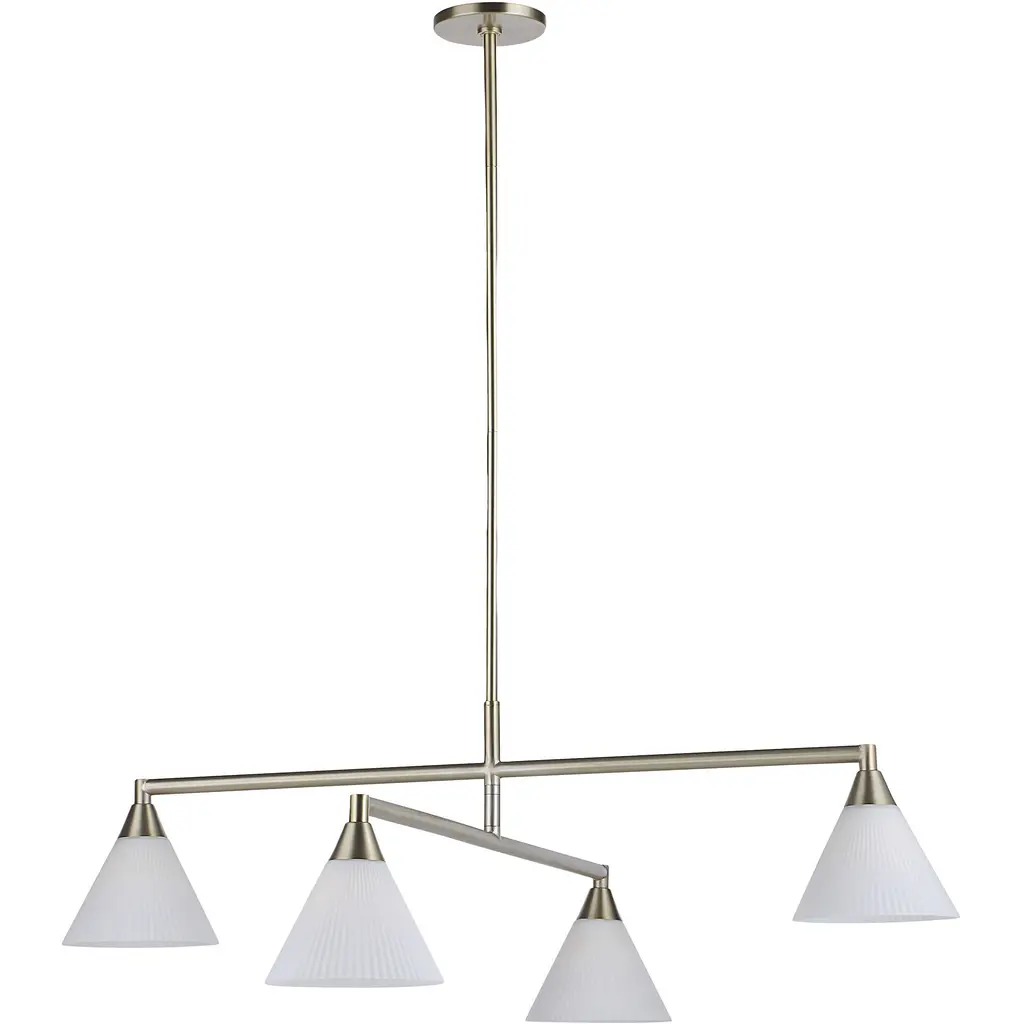 Got a design project in the works that could use a bold shot of drama The Isola ceiling light fixture has exactly what you need to put the finishing touch on any room. Created by Arren Williams, Canadian interior stylist and designer, it features a slightly asymmetric 4-armed design that makes it the perfect structure for so many different settings. Stretching out over a dining room table, kitchen island or in an entryway, its four cone-shaped fluted glass shades hang from a stunning champagne plated body to illuminate your room of choice with a modern twist. Choosing this ceiling fixture for a focal point ensures endless beauty.