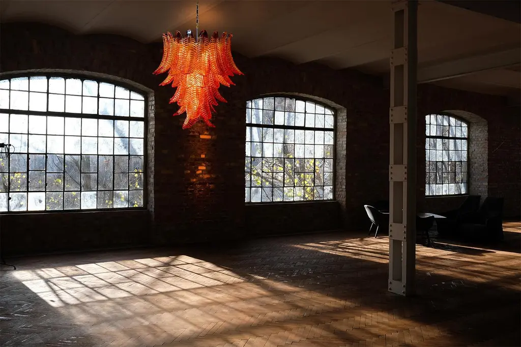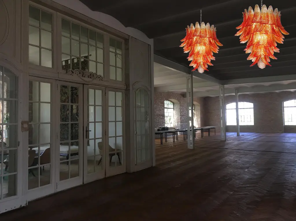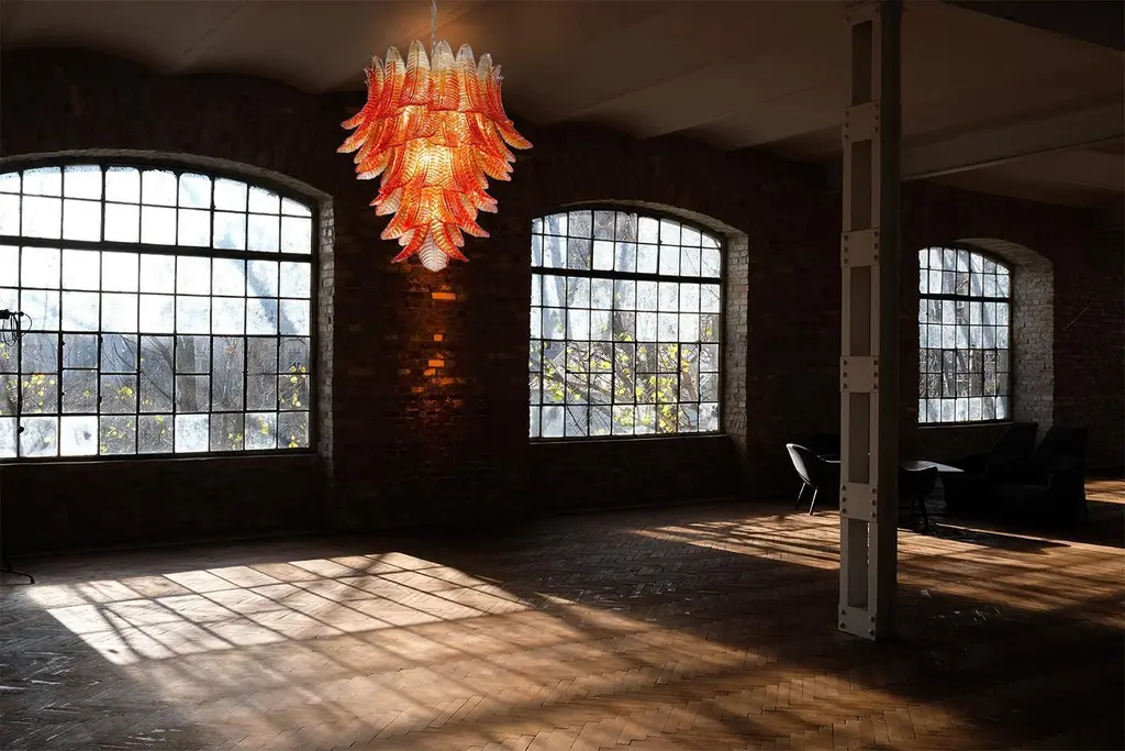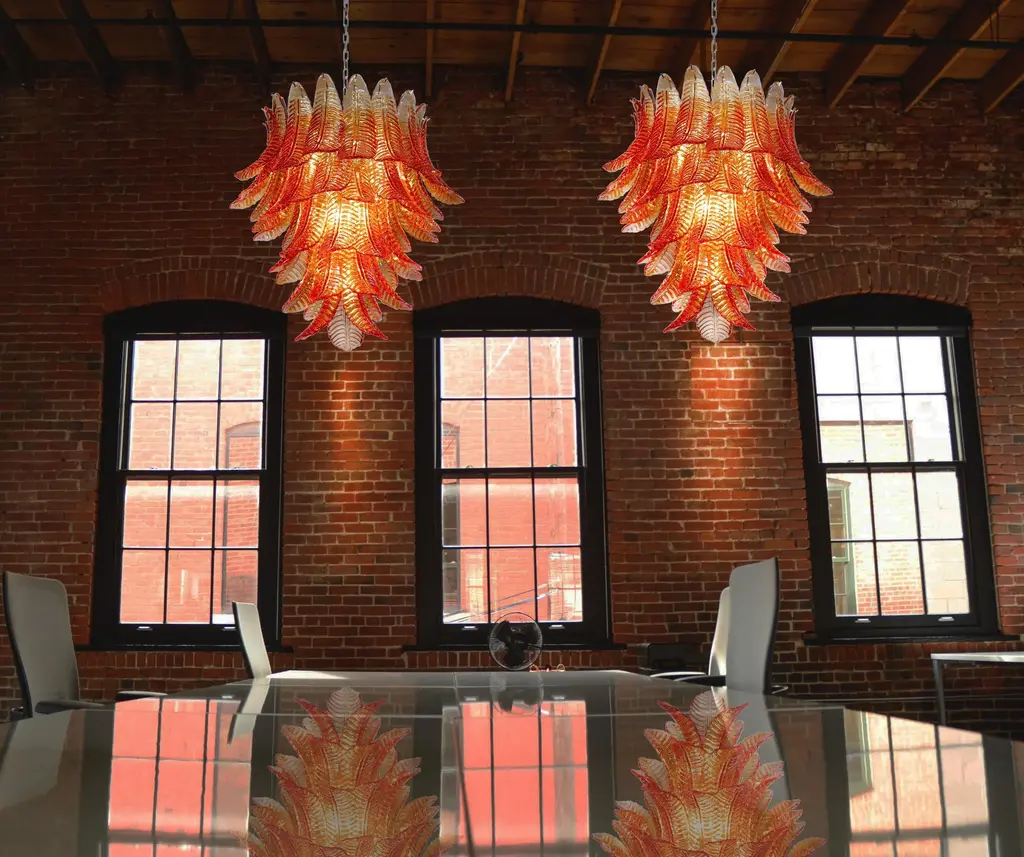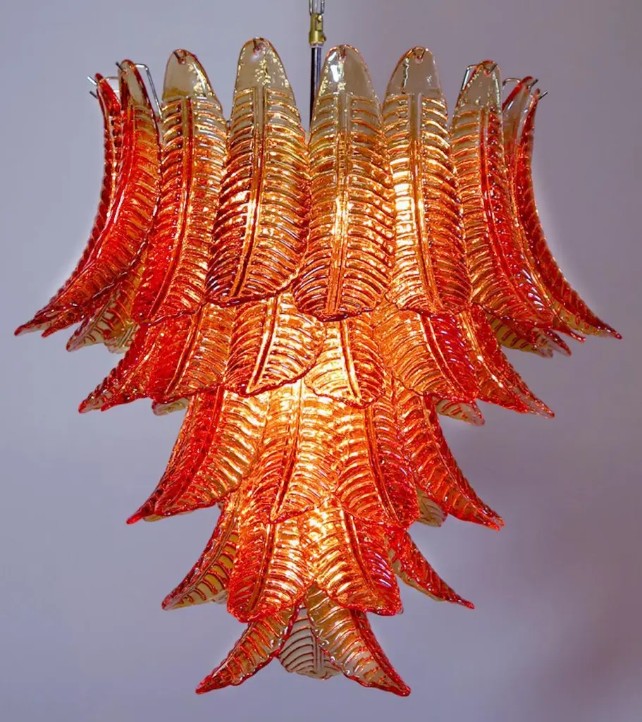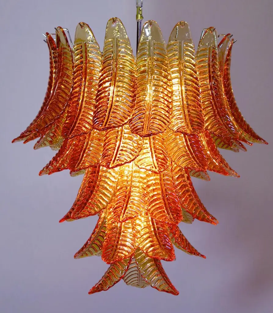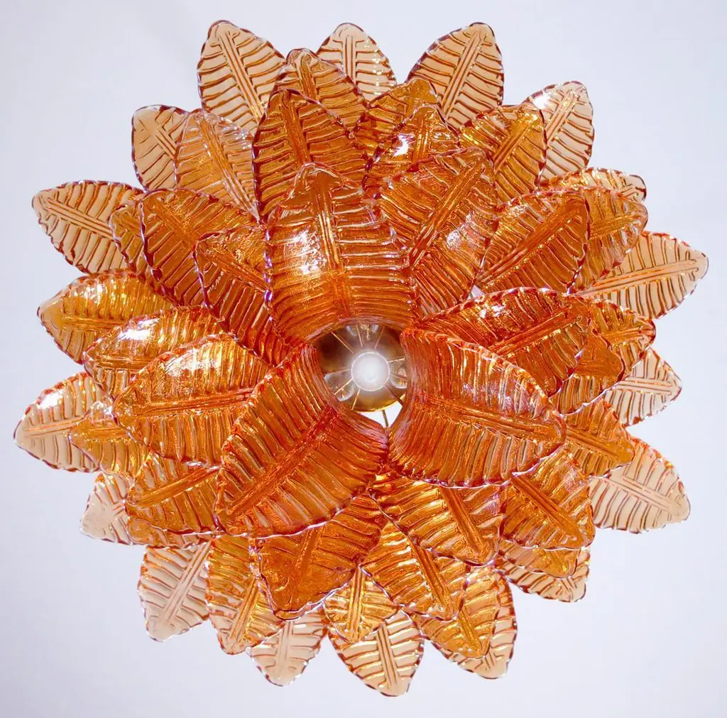 Italian Chandeliers With Leaves In The Style Of Barovier & Toso, Set Of 2