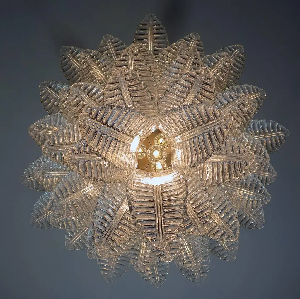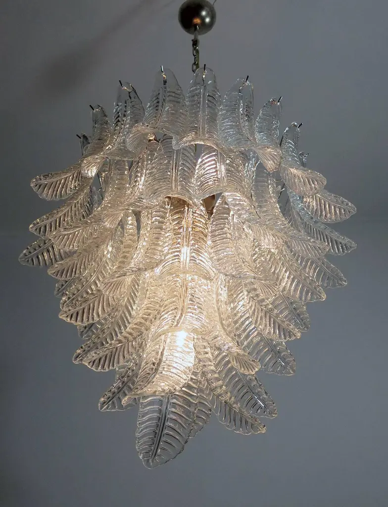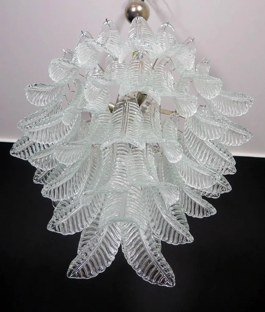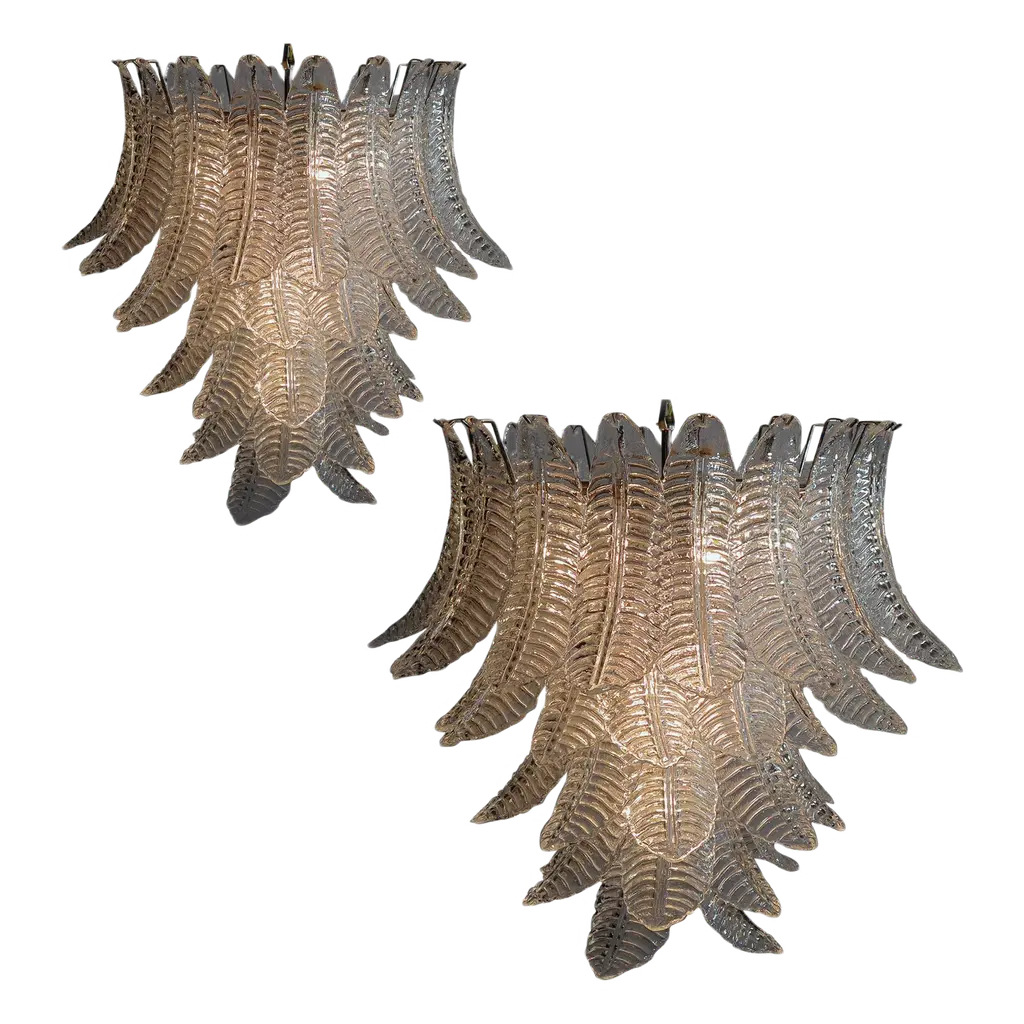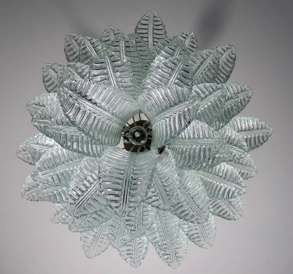 Italian Leaf Chandeliers In The Style Of Barovier & Toso, Murano, Set Of 2