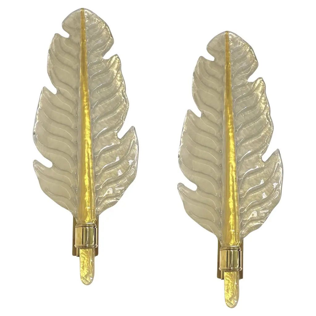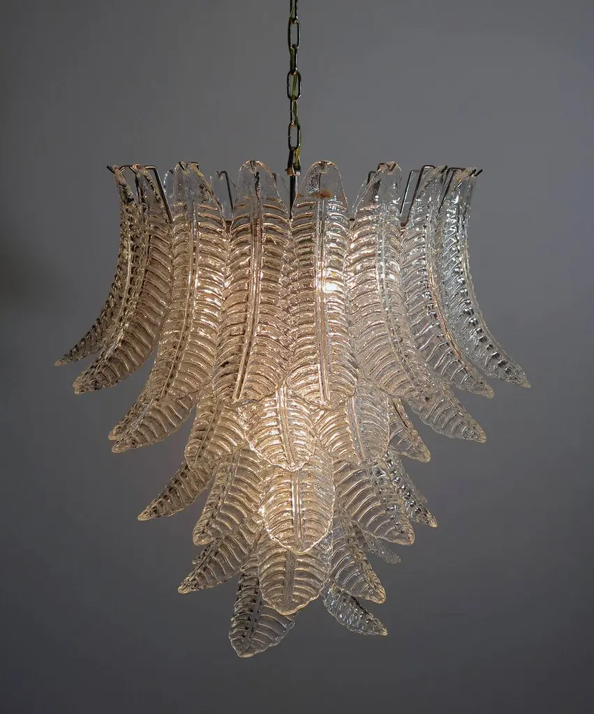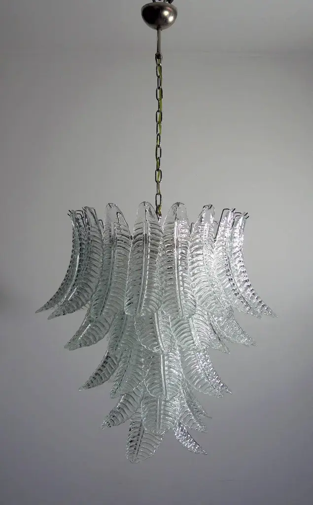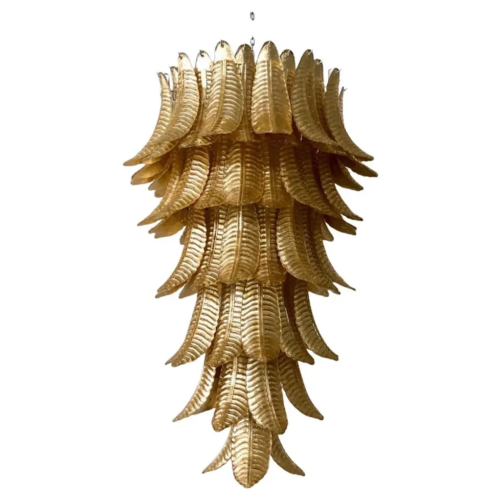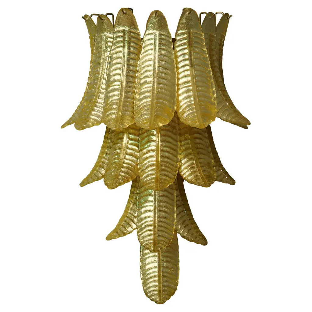 Italian Leaf Chandeliers In The Style Of Barovier & Toso, Murano, Set Of 2