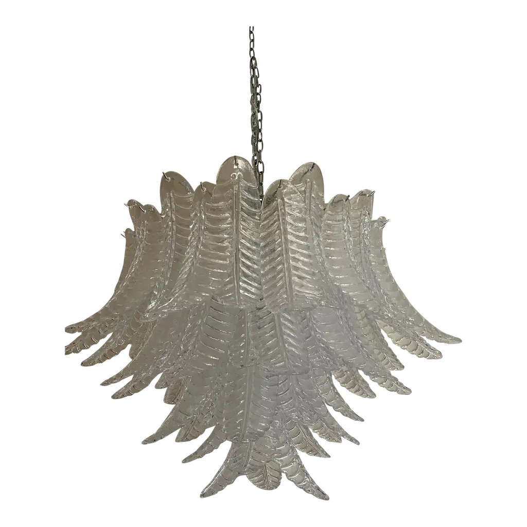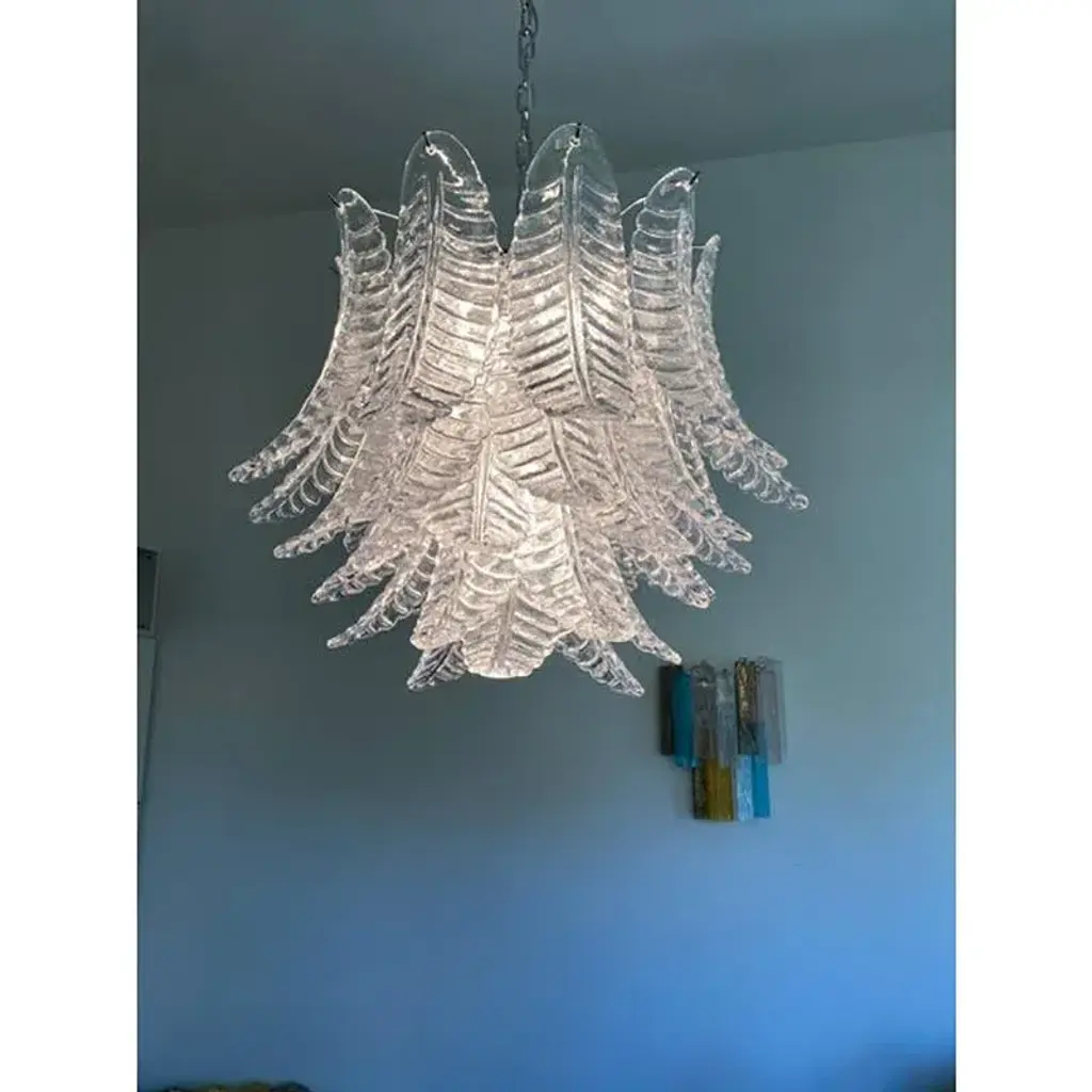 Italian Transparent Felci Murano Glass Chandelier By Simoeng