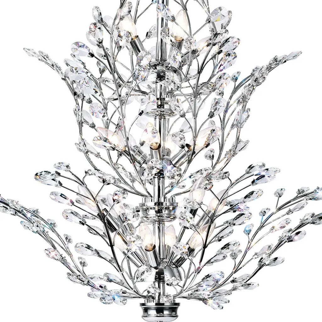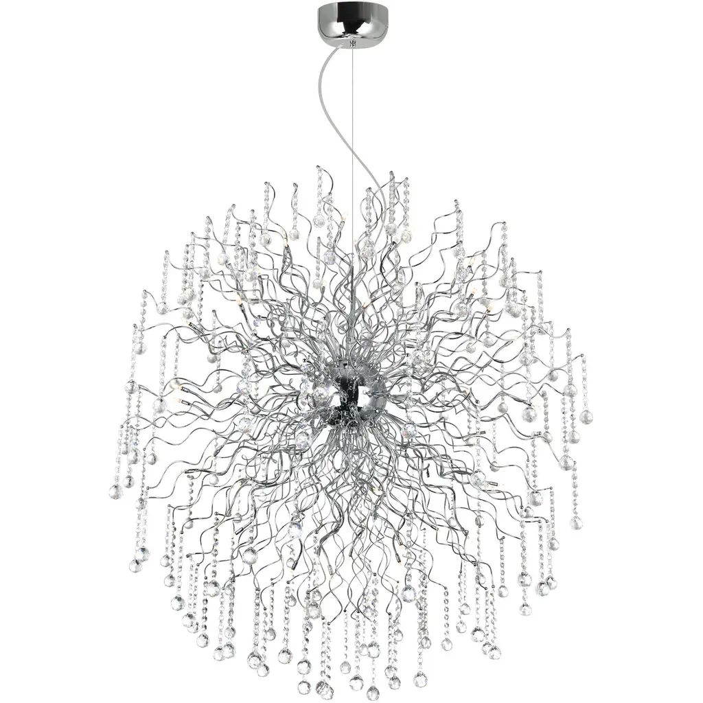 Make a dazzling statement with the Ivy 18-Light Chandelier, a stunning centerpiece that combines glamour and modern style. Its 40-inch diameter commands attention, while the crystal-adorned branches create a lush, botanical-inspired silhouette. The sleek chrome finish adds a contemporary touch, perfect for elevating any dining room, foyer, or living space. Elegant yet playful, this chandelier brings luxurious sparkle without feeling overly formal. Illuminate your home with showstopping brillianceideal for those who love bold, eye-catching design.
