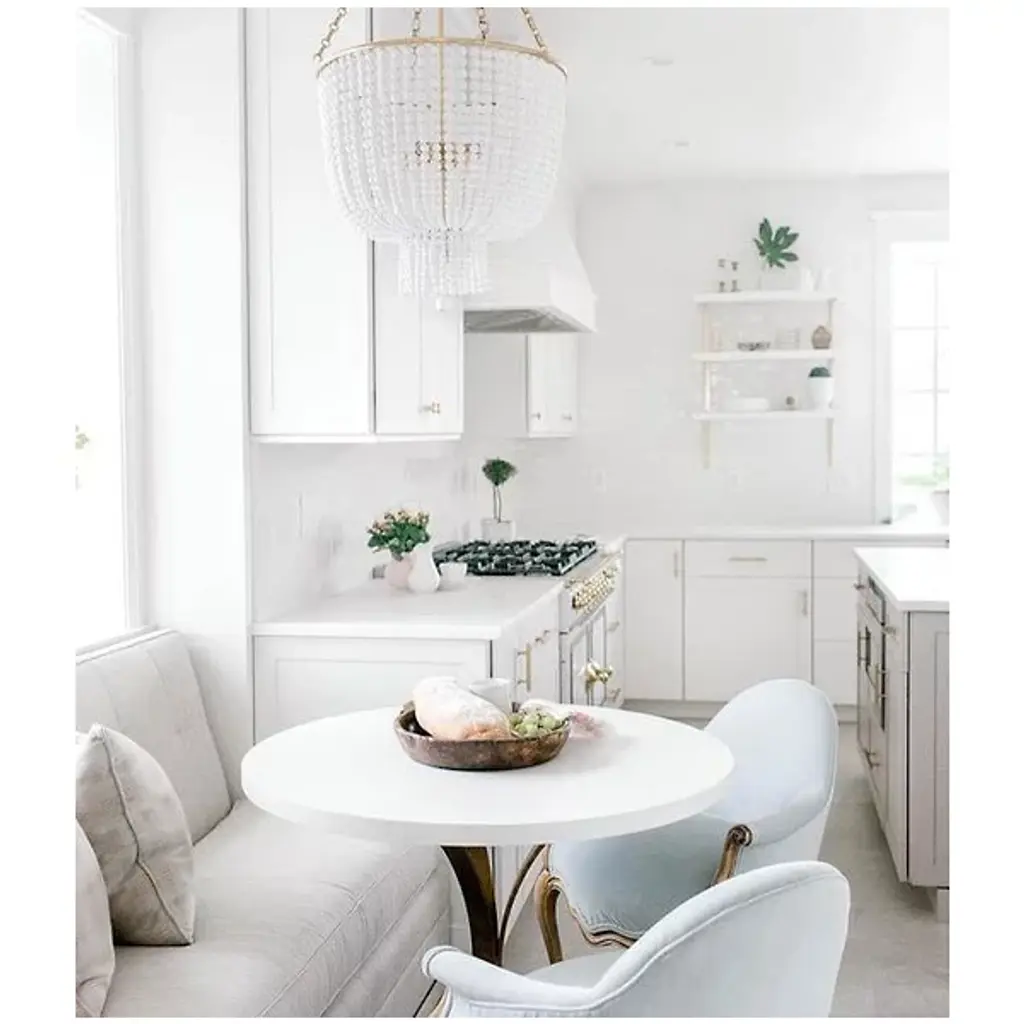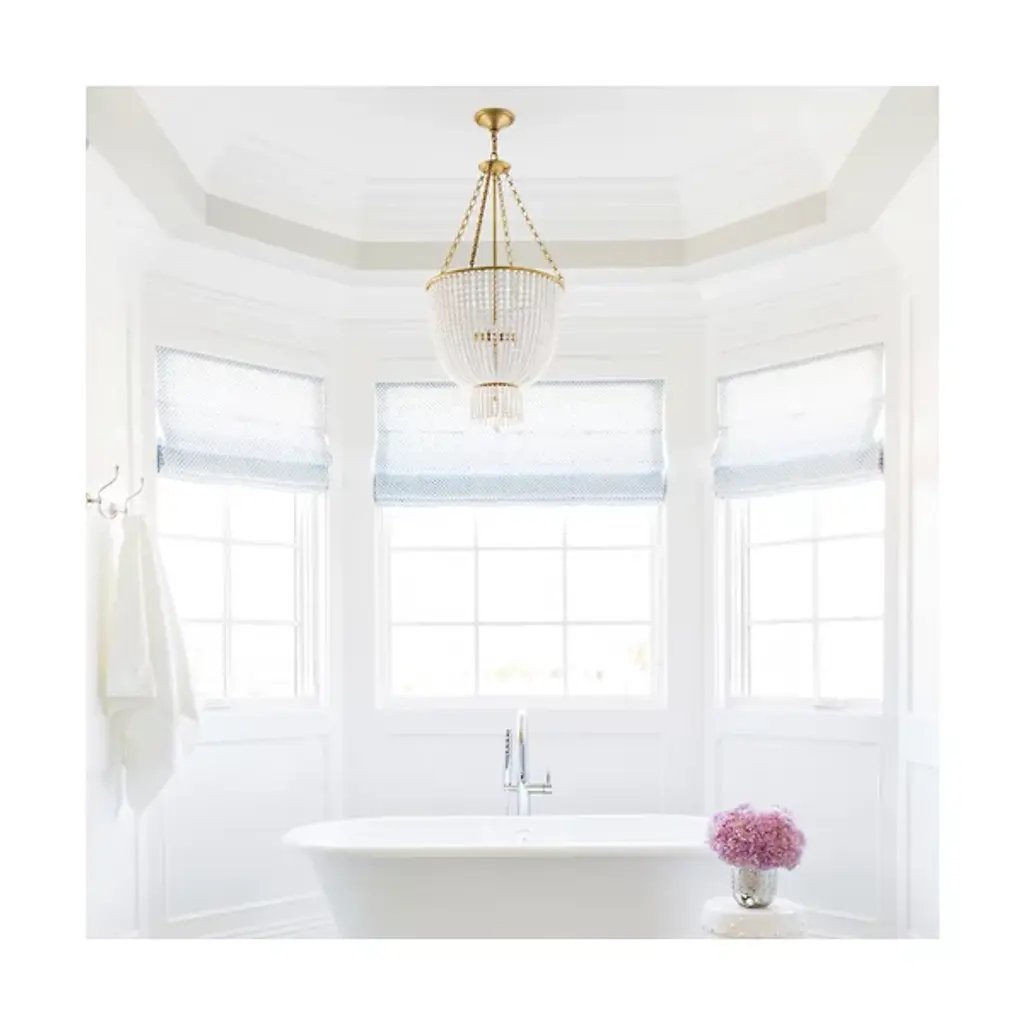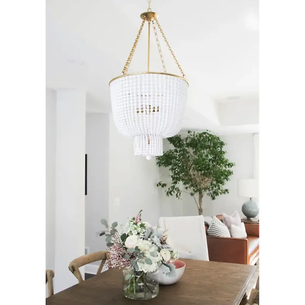 The Jacqueline Chandelier by Visual Comfort Signature, formerly known as Visual Comfort, brings a refined, traditional presence to your living space. Its design consists of individual strands of decorative beads which gently cascade down to a central bead accent. The semi-transparent surface (and the beads themselves) allows for light to filter out in a dynamic, shimmering fashion, bringing ambiance as well as lighting to the surrounding space.