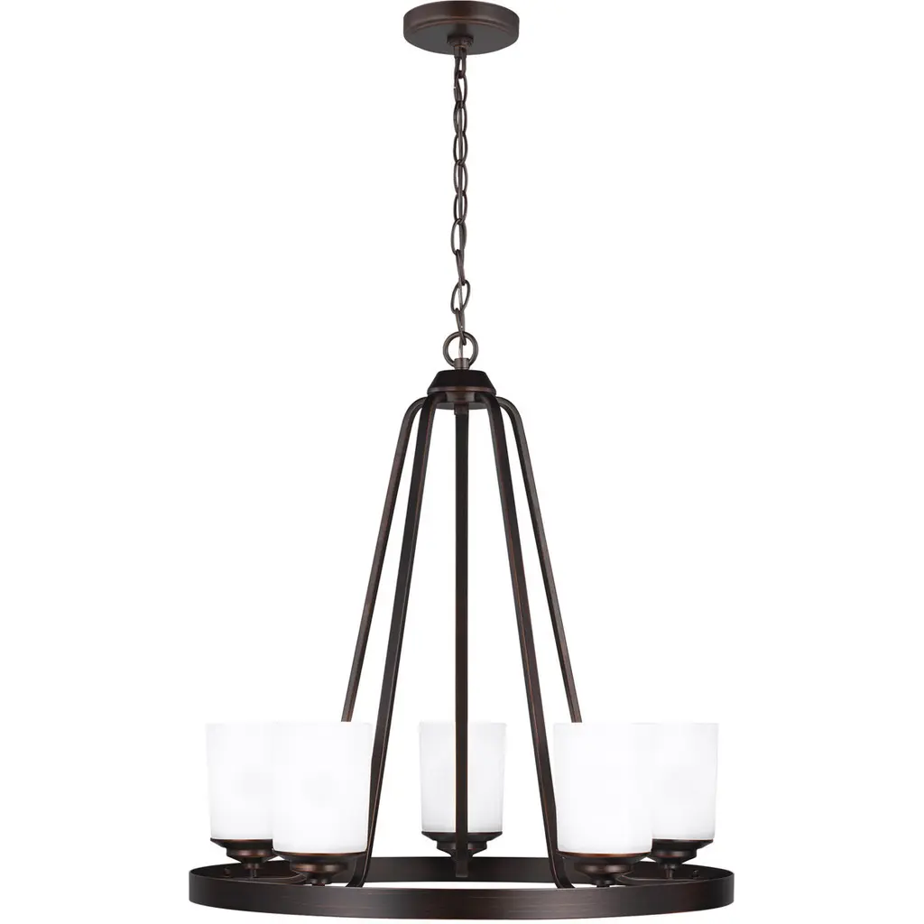 26" 5-Light Soft White Glass Chandelier in Bronze