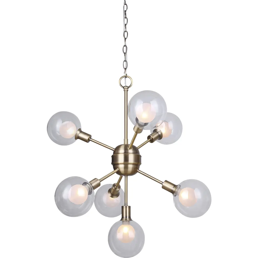 Reimagine how breathtaking your kitchen or dining room space could be with the AFX Jamie Chandelier. This dazzling pendant light features a strong, low-hanging design and crisp exterior finish, adding a dynamic flare to any indoor space. The stylish exterior shade helps redirect beautiful downlight to the far corners of your indoor space. From the design to the top-tier performance, this dazzling overhead pendant light adds depth and warm, ambient light to your kitchen island or dining room space.