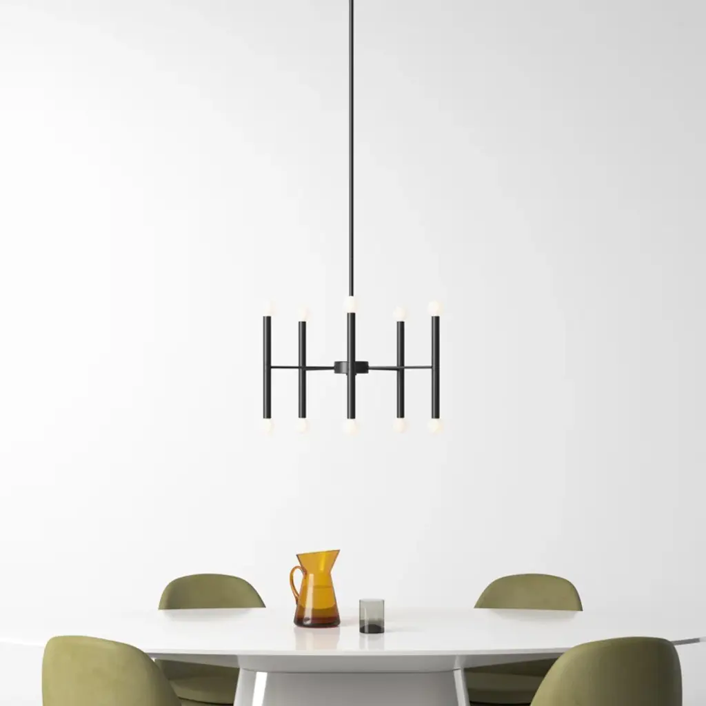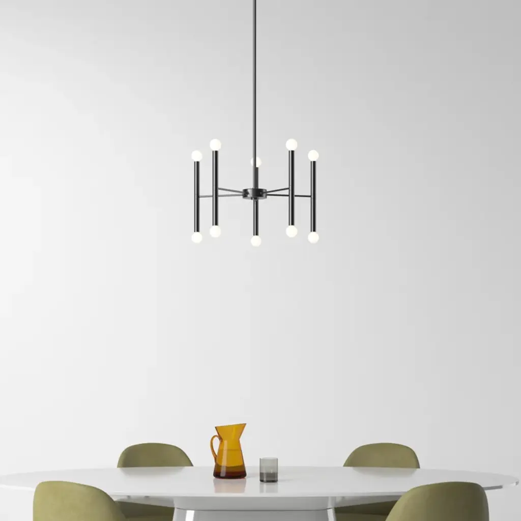 Tells a linear love story with elongated cylindrical rods extending outwards, creating a sleek statement that commands attention. This design establishes immediate style credibility thanks to its iconic mid-century modern origin, ensuring visual intrigue in either black or lacquered brass finishes.