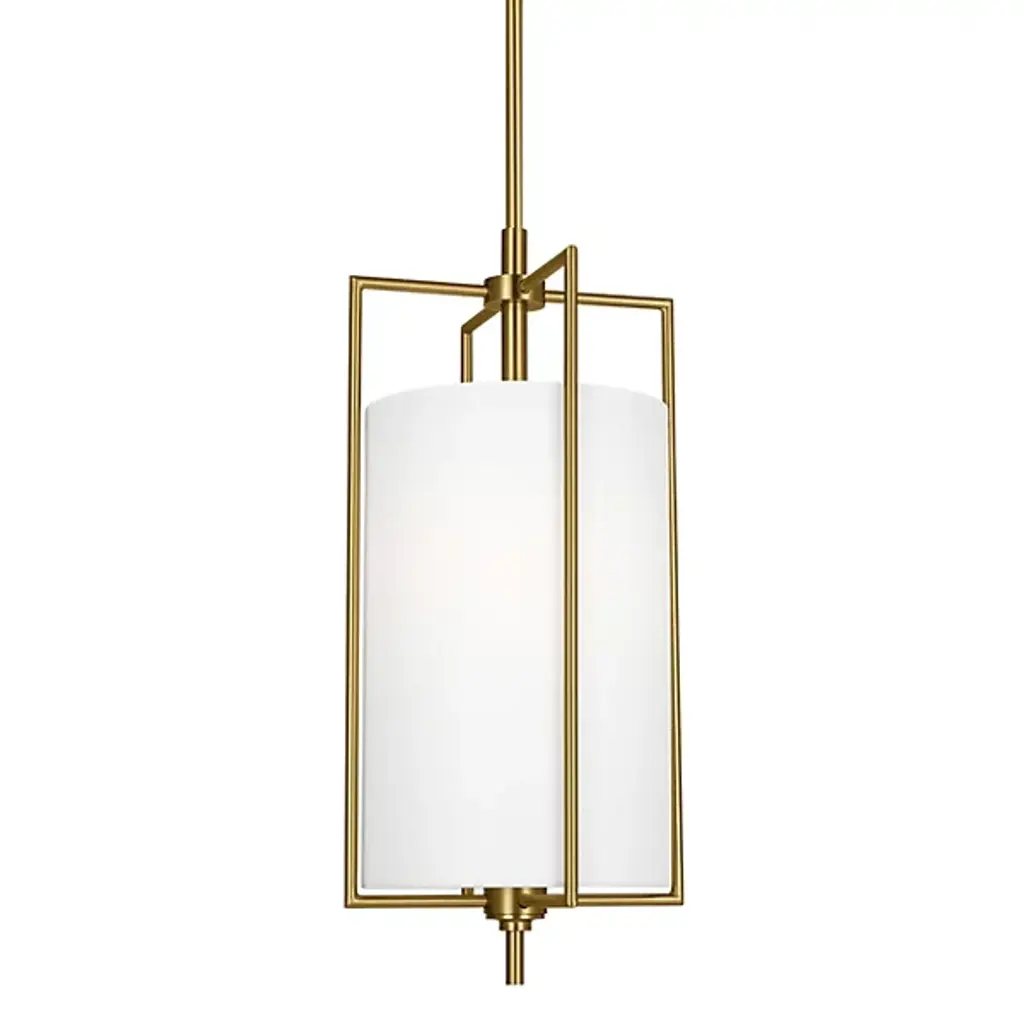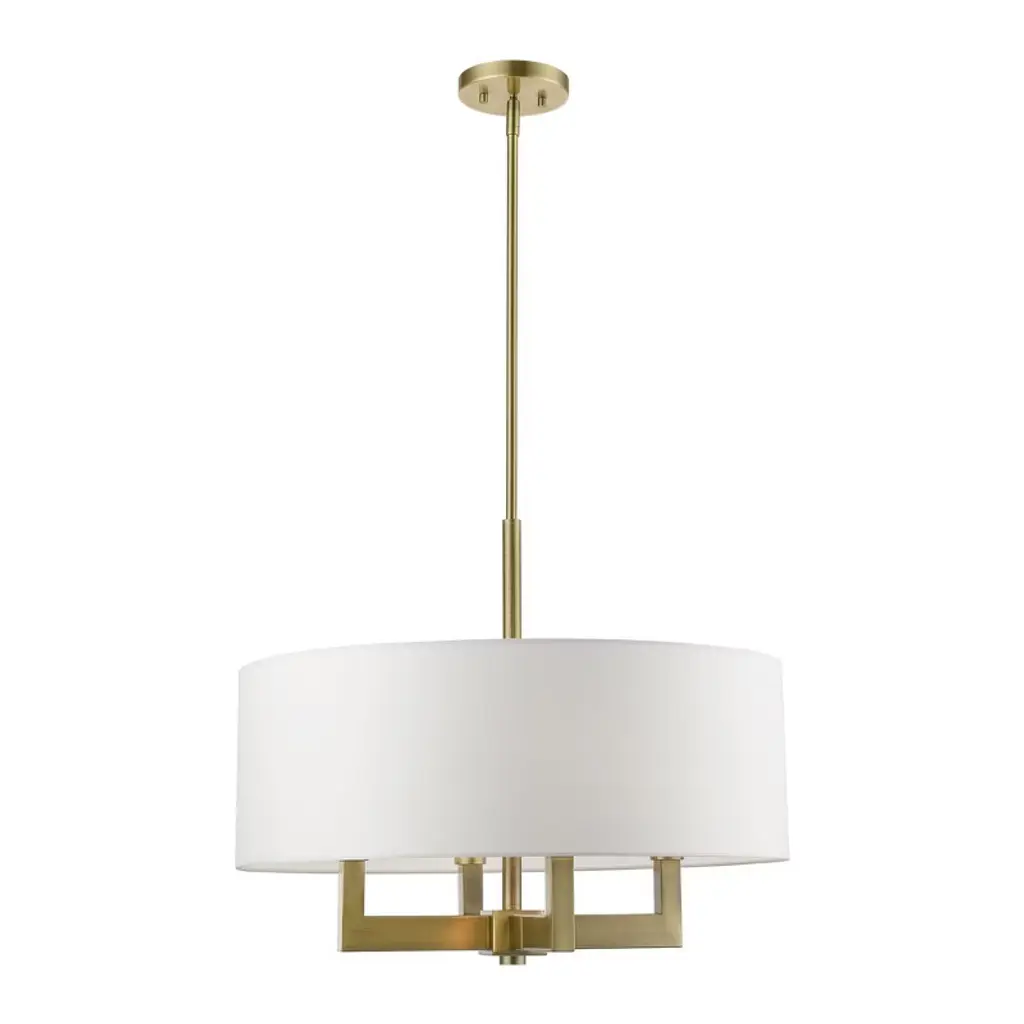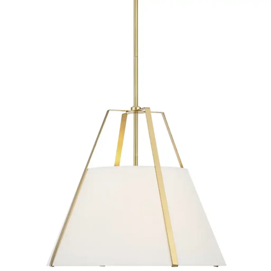 The Jase Chandelier from Visual Comfort Signature makes a captivating statement in any room. Designed by Ray Booth, this unique design features a square variation of familiar round fixtures, showcasing an internal carriage crafted from crossbars topped with elegant glass shield lights. The large linen box shade adds unexpected modern allure to the silhouette. The Extra Large Hanging Shade is perfect for anchoring any room and serves as a geometric statement over both round and square tables, adding a touch of contemporary elegance to any space.