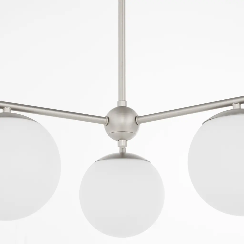 Part of the Main Street collection, the Jasper collection showcases a modern hub-and-spoke design with round globe shades and clean symmetry. Available in matte black or satin nickel and offered in both 3-light and 6-light configurations, its designed to suit a range of modern interiors.