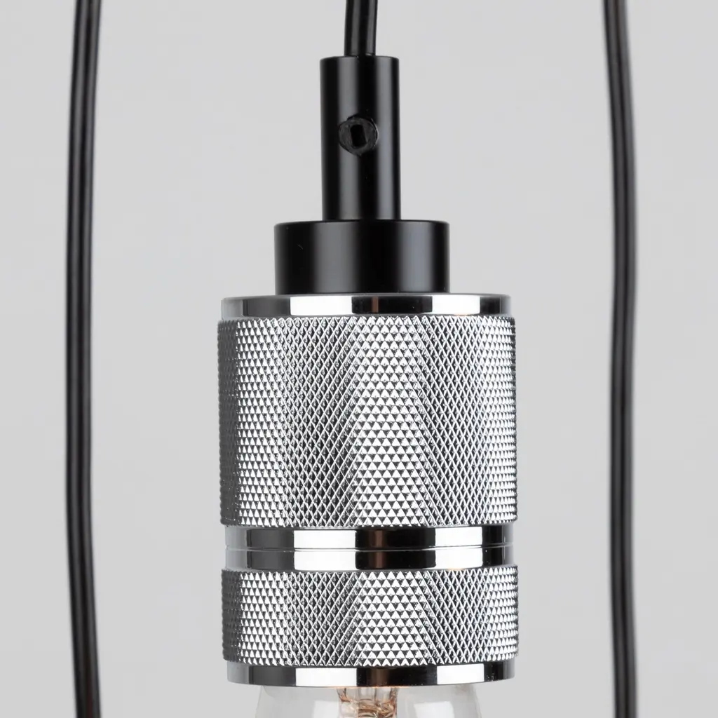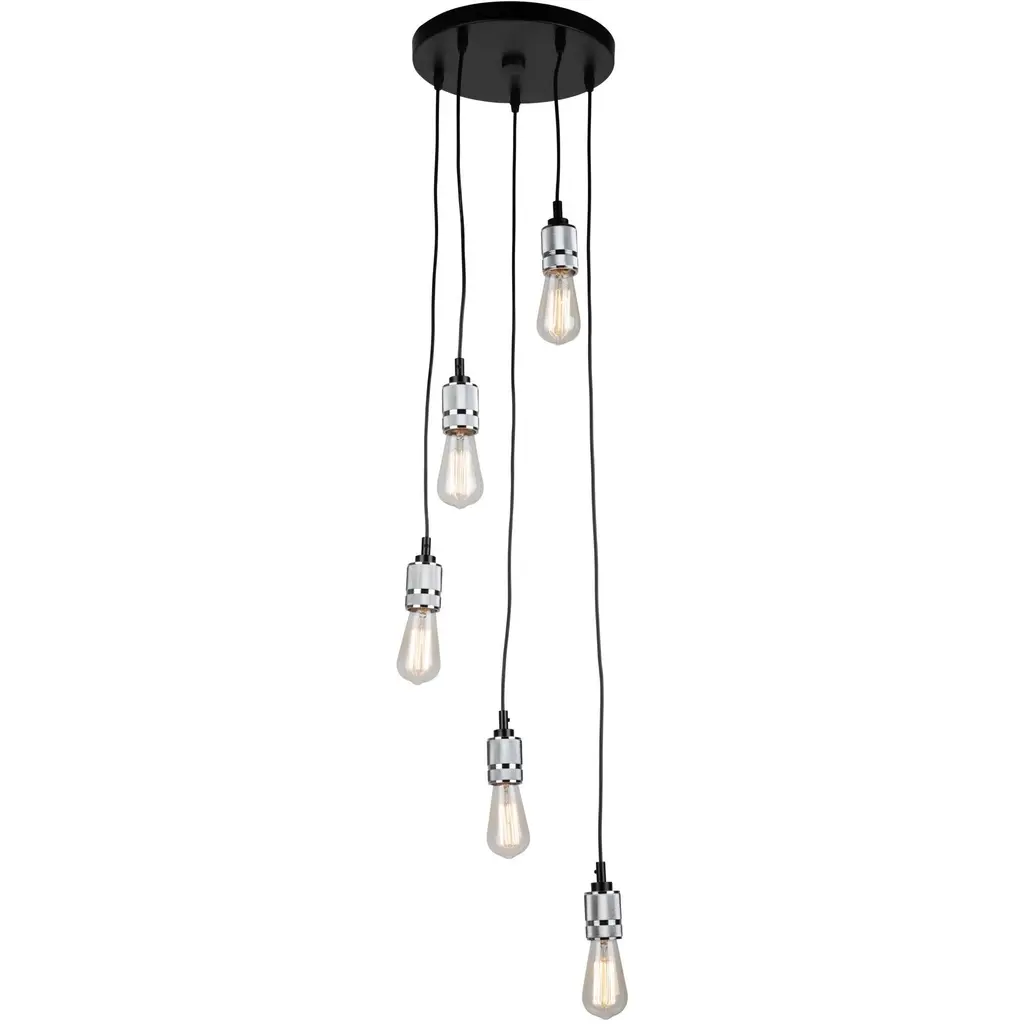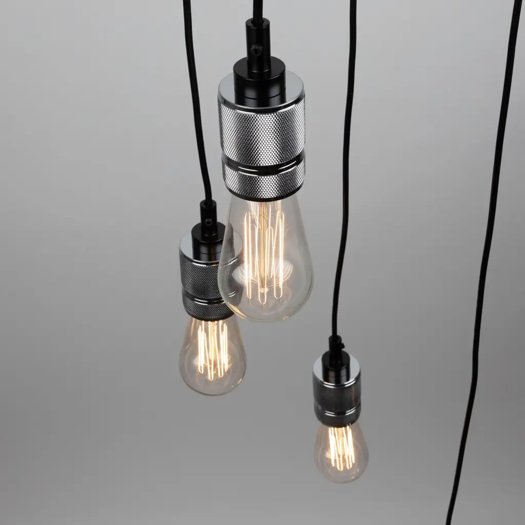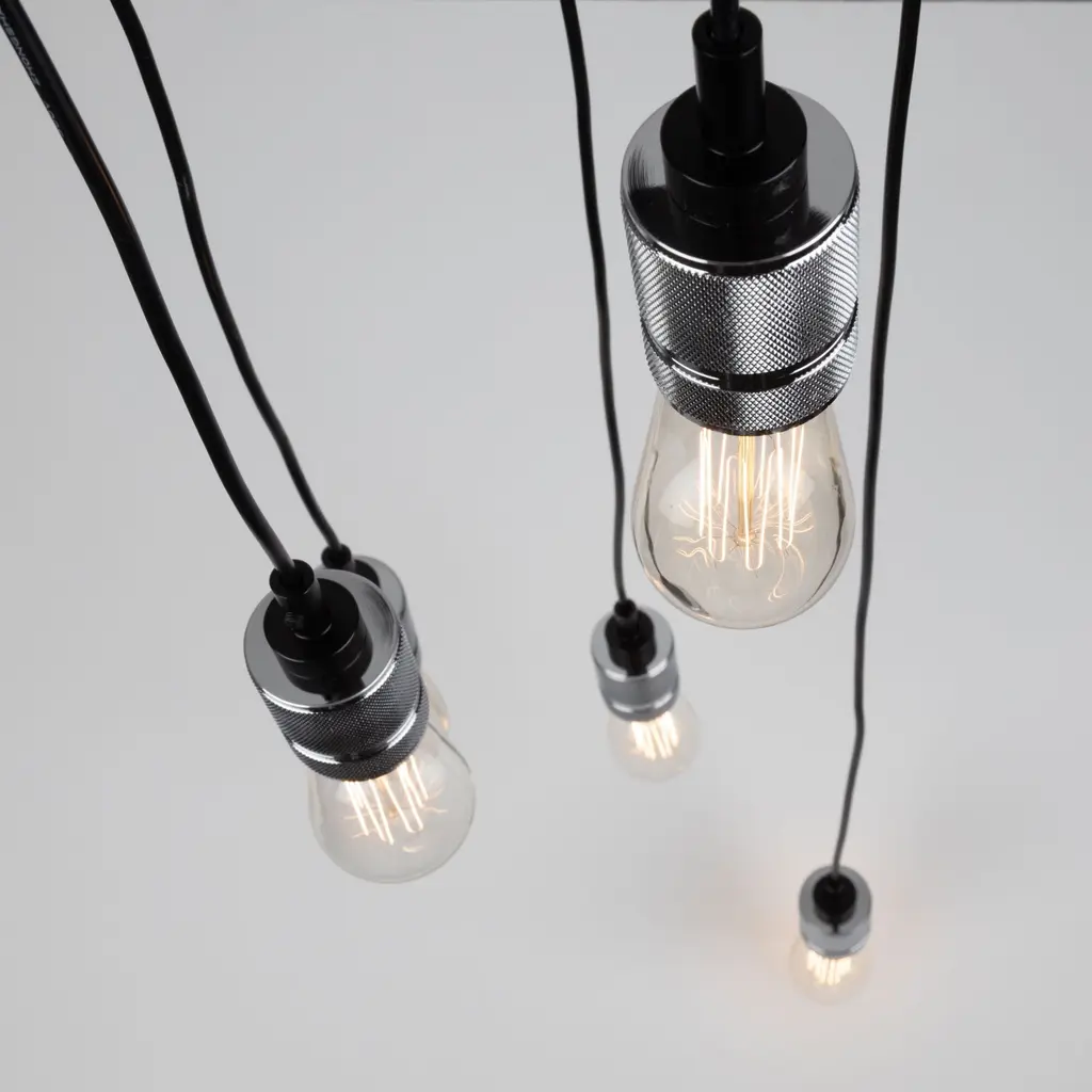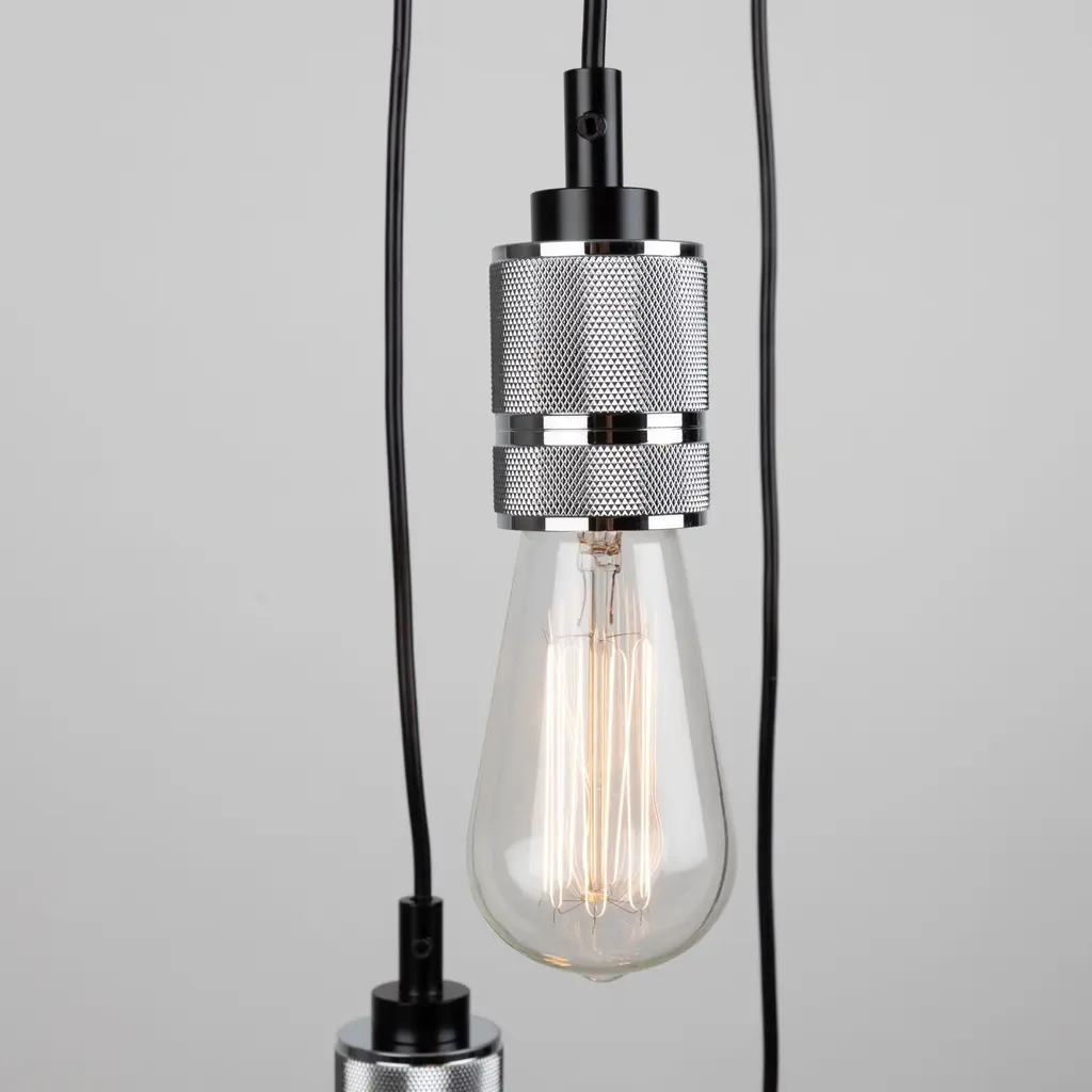Precise mechanized machine sockets make the "Jersey" collection fit into that popular urban type design. Suspended by black, height adjustable wiring with black canopy. Chrome socket shown. Also available in Vintage brass finish.