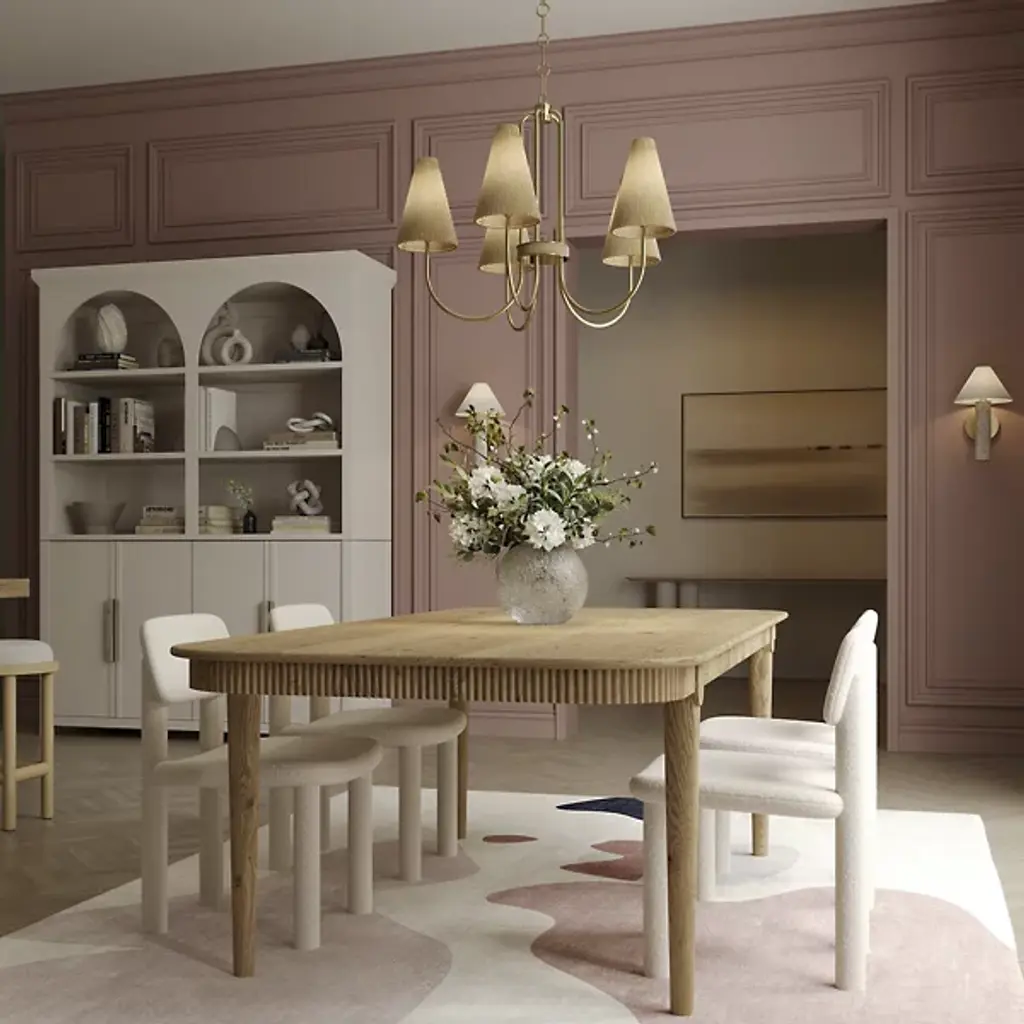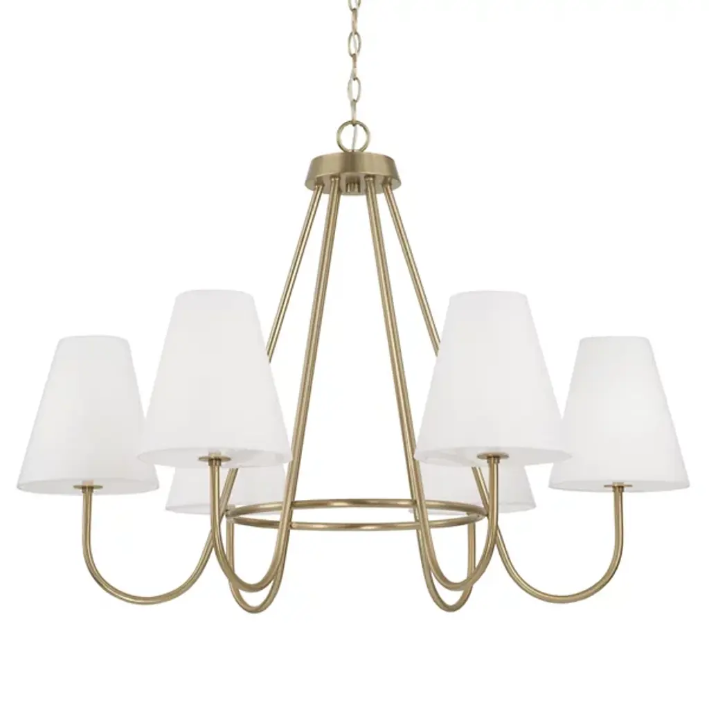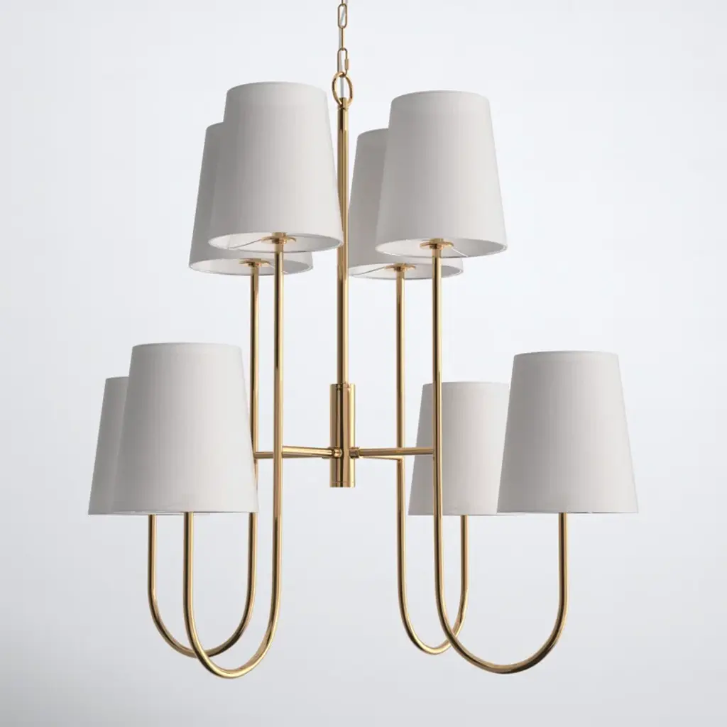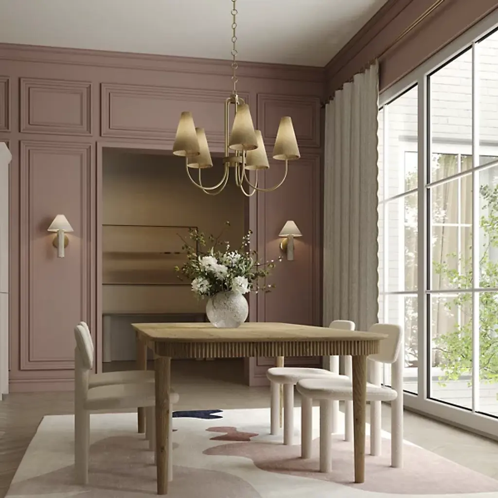 The Jessel Chandelier from Mitzi bridges time periods by blending a vintage-inspired framework with contemporary material interpretations. Sweeping arms establish fluid movement around the central axis, bringing energy and grace to the composition. Each elongated grasscloth shade contributes textural richness while moderating light output to create nuanced illumination patterns. The handwoven shade material ensures subtle uniqueness in each fixture while introducing organic elements to more formal spaces. Especially effective in cottage-inspired interiors, this chandelier brings natural warmth to dining areas, front entrances, or living rooms.