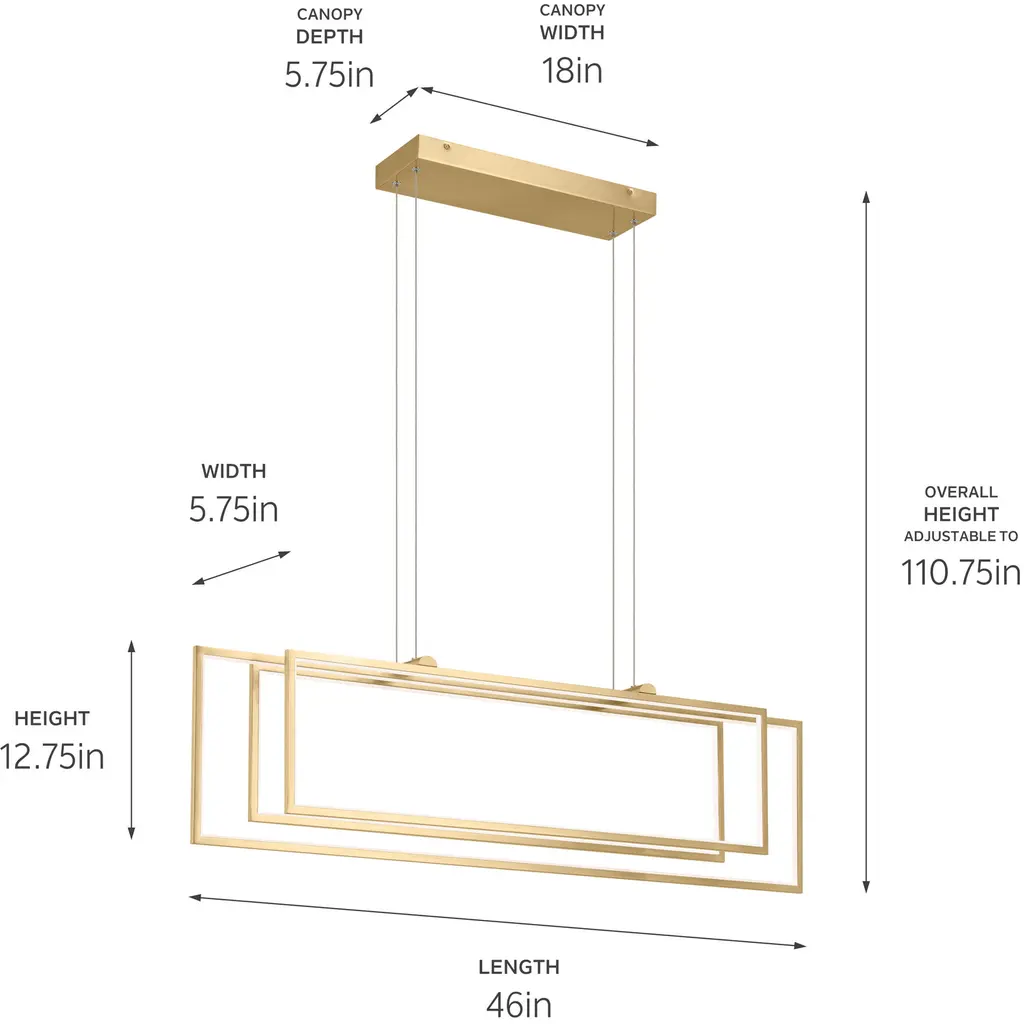 Jestin 46 Inch LED Linear Chandelier in Champagne Gold