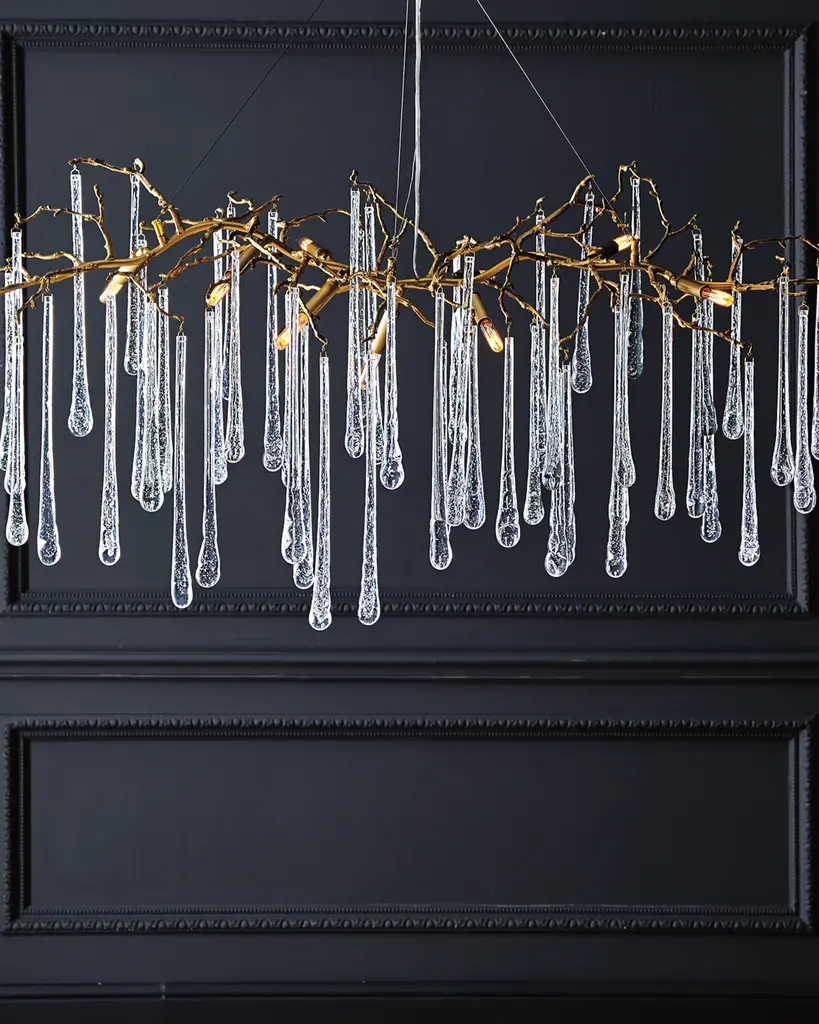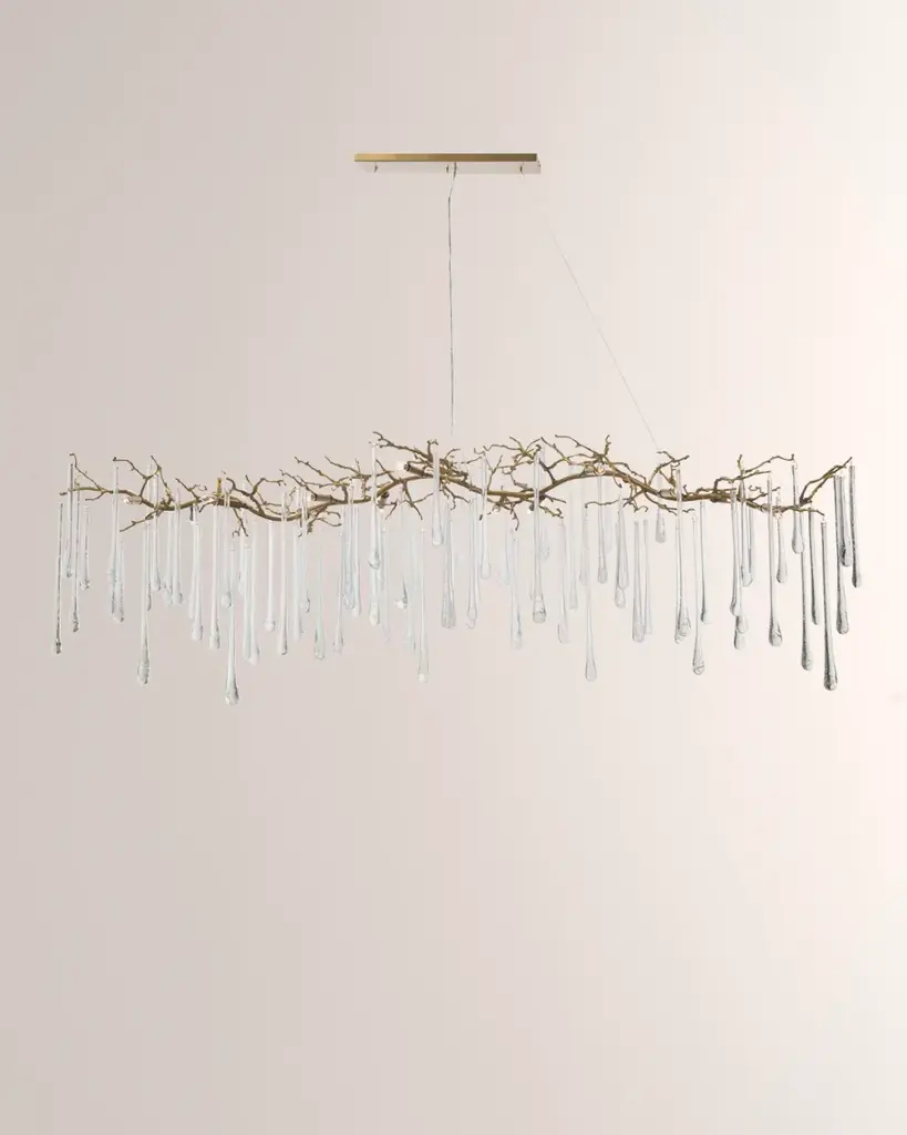 Handcrafted brass branch chandelier. Glass teardrops throughout. Includes three 5' adjustable cables. Uses fourteen type-B 25-watt bulbs. Canopy: 19"W x 12.5"D. Chain: 57" cables. Overall: 84"W x 23"D x 10.5"T. Imported. Weight, 62 lbs. Boxed weight, approximately 100 lbs. About the John-Richard Collection Founded in 1980 in Greenwood, Mississippi, the John-Richard Collection is known for a strong design staff that travels the world for inspiration. Channeling cultural and historical influences, the company creates distinctive artisan-crafted furniture, lighting, wall art, mirrors, and decorative accessories that make a lasting impression. What's more, an eye for future trends in luxury home furnishing sets the John-Richard Collection apart. They skillfully blend the best of what is new in home fashion with the great designs of the past, resulting in updated designs that fit perfectly with an array of styles.