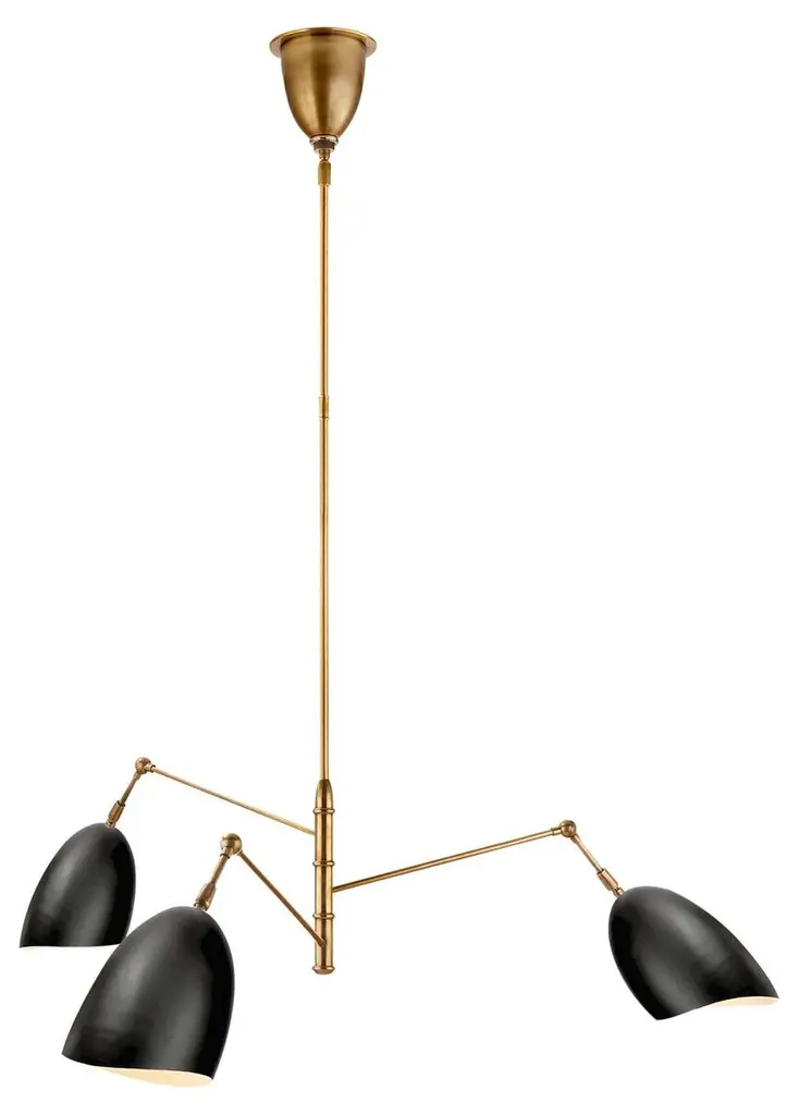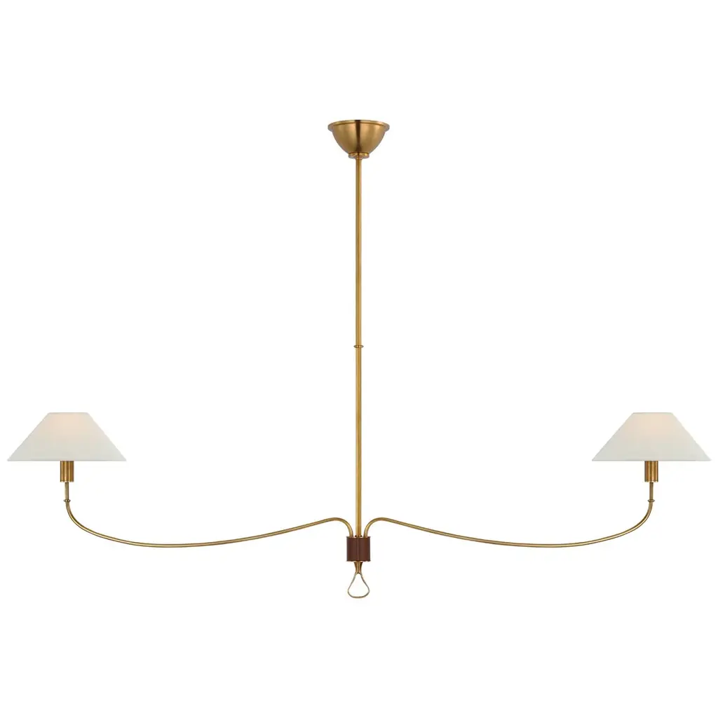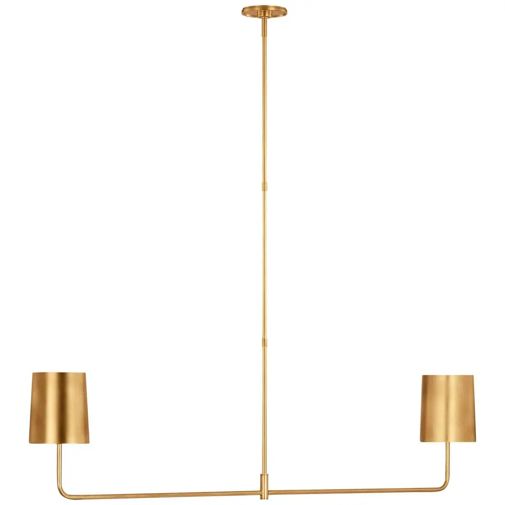 In a minimal elegant design, our Jonas Linear Chandelier has subtly curved arms in two striking finishes. Its narrow linen shades complement the modern frame and illuminate your space with its sleek angled construction.