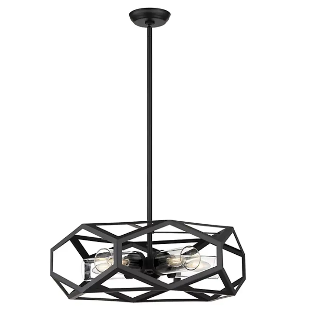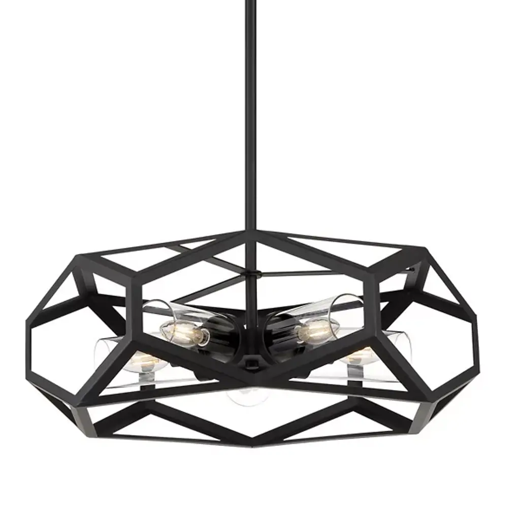 The Josephine Chandelier by Alder & Ore is a bold, beautiful addition to spaces. Suspended by a single down rod, a collection of visible bulbs are set within an openly styled, handsomely finished, metal frame. Cylindrical glass shades are set around each light source, adding a cool, layered look to this dynamic design as it offers plenty of illumination to surroundings that helps to highlight the geometric structure of this chandelier.