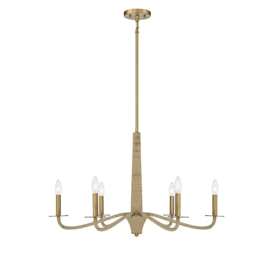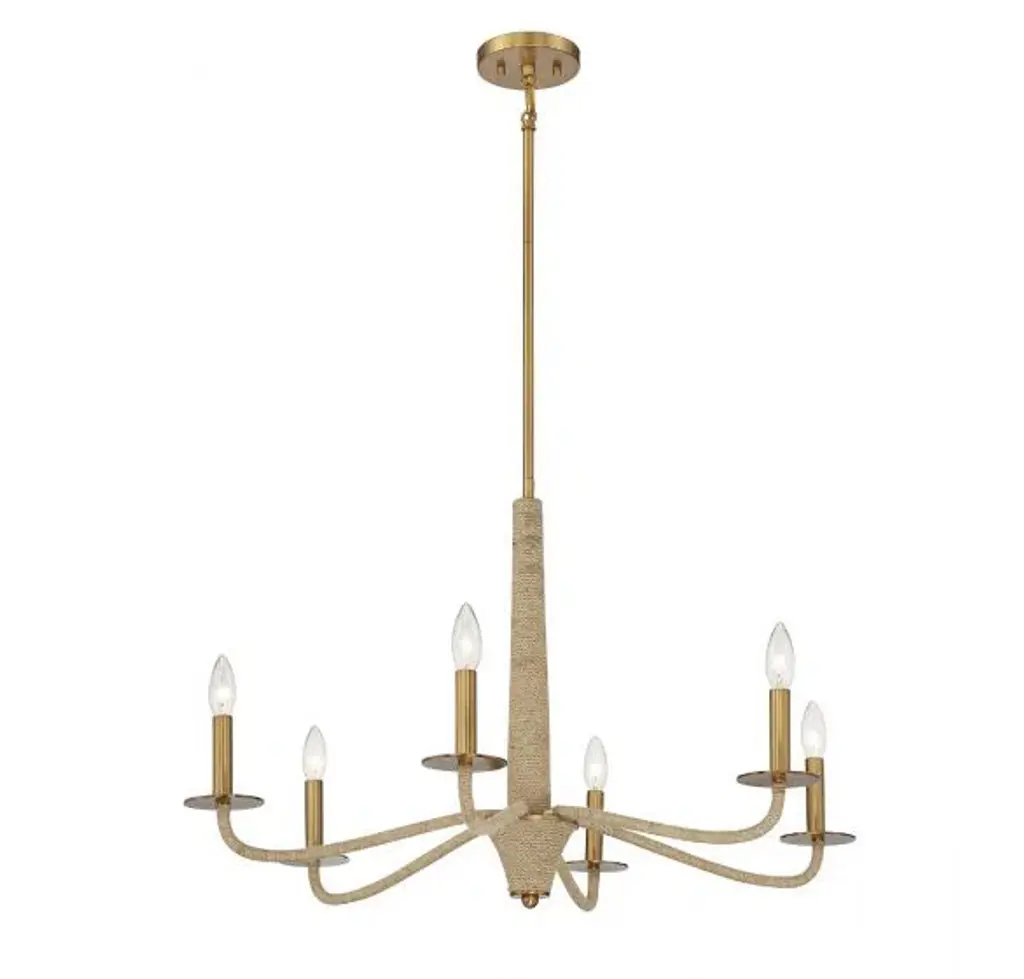 Joslin 6-Light Chandelier In Warm Brass And Rope