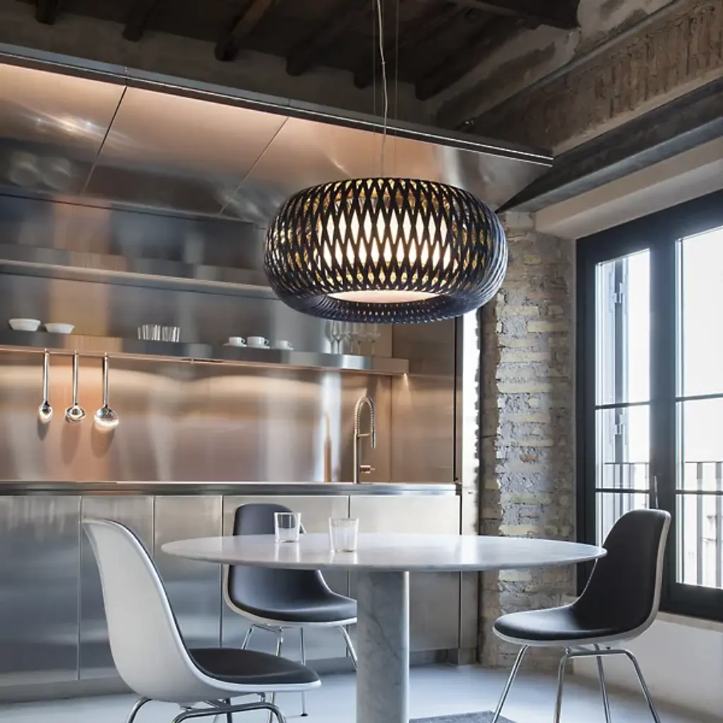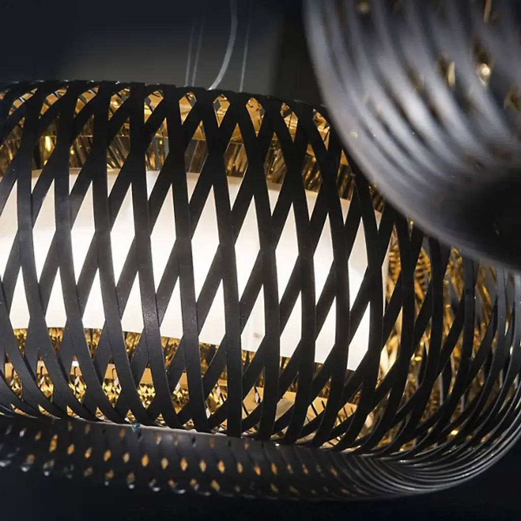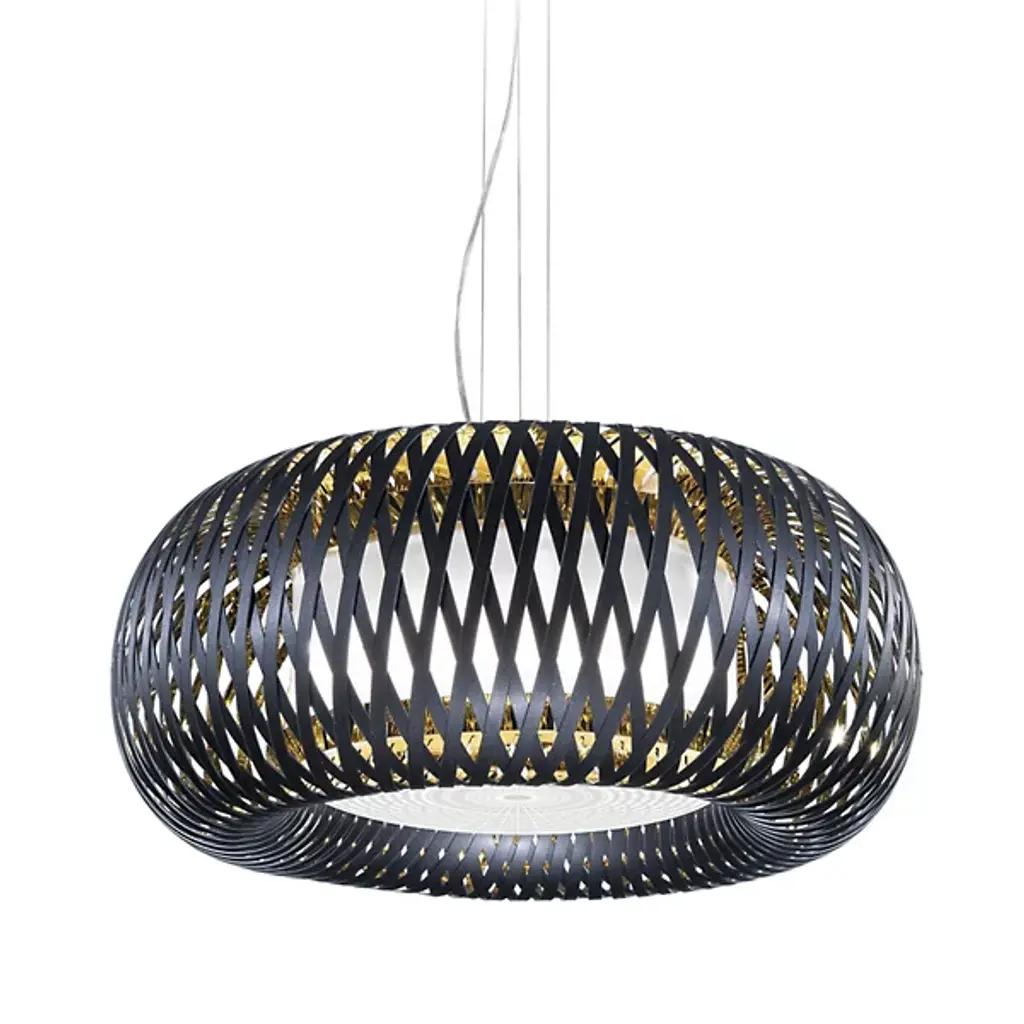 The Kalatos Chandelier by Slamp adds a layered and elegant touch to the spaces it brightens within your home. Created by industrial and interior designer Elisa Giovannoni, this piece was inspired by the traditional art of weaving and brings a modern touch to this patterned technique with the use of Slamp’s advance technopolymer materials. With a simple, rounded silhouette, the shade of this chandelier envelopes an energy-efficient light source, beautifully blending form and function as it dresses up the areas it adds an artful, luminous layer to.