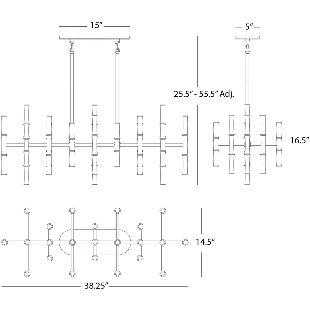 The Kane chandelier combines a sleek metal design with a linear shape, making it a stunning centerpiece for your dining room or kitchen. Its elegant construction allows for a seamless integration into modern or traditional decor, enhancing the ambiance of any occasion. This fixture accommodates replaceable LED bulbs, ensuring a stylish and energy-efficient lighting solution.