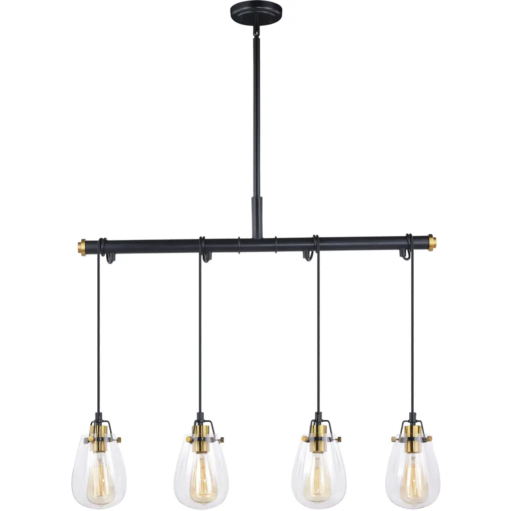 The striking Kassidy collection is a throwback to an industrial time. The distinct black linear lines are punctuated with accents in a natural brass finish. Gently curved teardrop glass shades softly offset the statement this collection makes. Adjustable light heights and lengths enable customizing the look based on your setting. Combine that with vintage Edison style filament bulbs to complete the look.