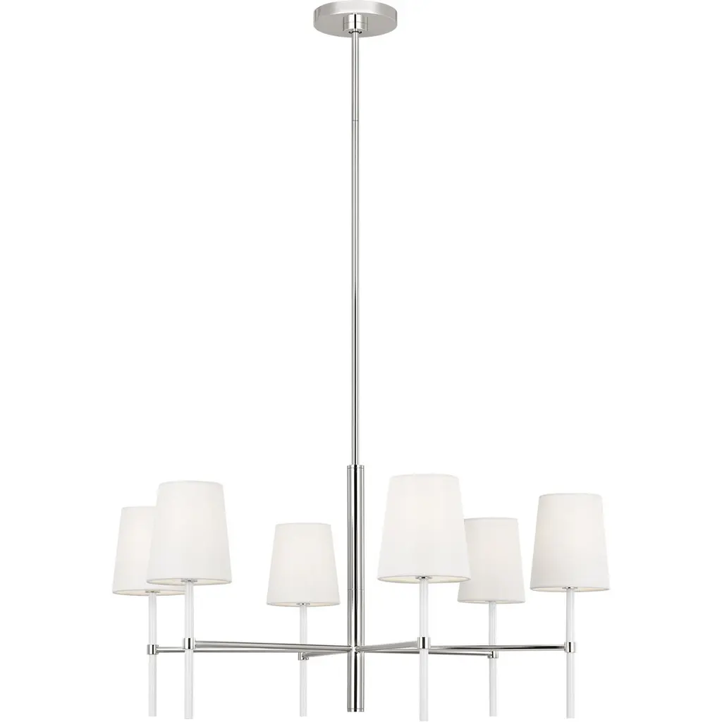 Kate Spade New York Monroe 6 Light 32 Inch Polished Nickel Chandelier Ceiling Light In Polished Nickel / Gloss White
